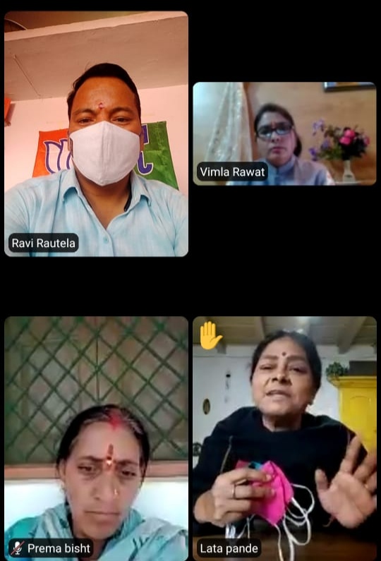 अल्मोड़ा-जिला महिला मोर्चा की वर्चुअल मीटिंग बुद्ववार को आयोजित की गई।राष्ट्रीय महिला मोर्चा की अध्यक्ष श्रीमती वानिथी श्रीनिवासन एवं प्रदेश अध्यक्ष श्रीमती ऋतु खण्डूरी के निर्देशानुसार कोबिड 19 महामारी से लोगों को बचाने हेतु सभी अल्मोड़ा मंडल के मण्डल अध्यक्षों व जिले की टीम को निर्देशित किया।अपने अपने क्षेत्रों मे 3/4लोगो की टीमें बना कर उन्हें अलग अलग जिम्मेदारी देने और अपने अपने क्षेत्र मे कोविड के नियमों का पालन करतें हुवे अपने आसपास के अकेले रह रहे वृद्ध जनों को सहयोग दवा,खाने तथा उनकी देखरेख मे सहयोग देने,पाजीटिव होम कोरेनटाइन लोगों को फोन द्वारा जरूरी मदद देने,प्लाजमा डोनर,ब्लड डोनर है तो उनकी मदद से पीड़ित लोगों की सहायता पहुंचाने के कार्य, मास्क,सैनेटाइजर अथवा साबुन इत्यादि को जरूरत मंदो को दिये जाने की मुहिम चलाने कोविड 19 मे स्वयं को और समाज को सुरक्षित रखते हुए कार्य किये जाने की बात बतायी।मीटिंग में मुख्य अतिथि के तौर पर जिलाध्यक्ष रवि रौतेला रहे जिन्होंने विशेष सहयोग का आश्वासन महिला मोर्चा की टीम को दिया,साथ ही विशेष सहयोगी के रूप मे प्रदेश मंत्री कुमाऊँ कोविड प्रभारी श्रीमती विमला रावत ने कोविड से लोगो को बचाने के लिये दिशानिर्देश दिये कि हम छोटे छोटे कार्यो द्वारा अपने आस पास के लोगो को मदद दे,श।ऐसी छोटी छोटी मदद अवश्य करने का प्रयास करे।सबका स्वास्थ्य,सबका सहयोग का ध्यान रख कर कार्यों को पूरा किया जाये।इस मीटिंग में जिला महामंत्री श्रीमती मंजू रावत,प्रदेश कार्यकारिणी सदस्य निर्मला शर्मा,प्रदेश कार्यकारिणी सदस्य मीना भैसोड़ा,वरिष्ठ लता पांडे,प्रेमा मेर,बीना चौधरी,पिंकी करगेती,विभिन्न मण्डलों के अध्यक्षों श्रीमती गीता जोशी,रेखा पांडे,दीपा हर्बोला,लता पंत,प्रेमा बिष्ट,कमला फुलेरिया,चंद्रकला,रजनी पपनोई ने भाग लिया।मीटिंग का सफल संयोजन शोशल मीडिया प्रभारी दीप्ति बिष्ट ने किया।