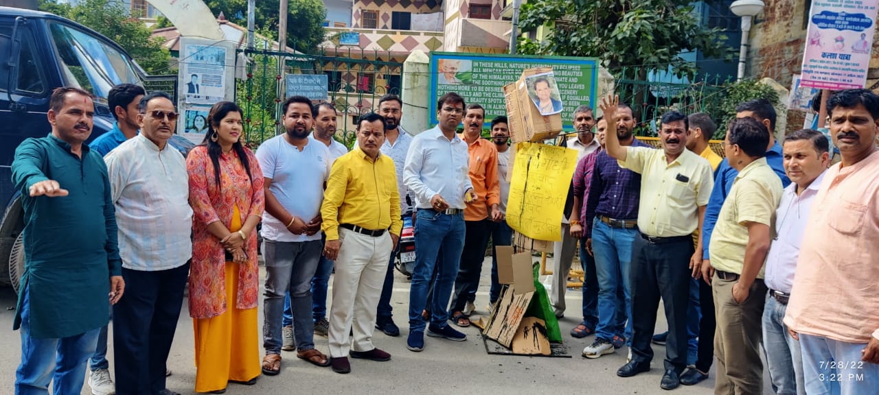 अल्मोड़ा-आज भारतीय जनता पार्टी कार्यकर्ताओं द्वारा कांग्रेस के नेता अधीर रंजन दास द्वारा देश की राष्ट्रपति को अभद्र संबोधन के विरोध में कांग्रेस पार्टी के अध्यक्ष सोनिया गांधी का पुतला फूंका और इसे देश का अपमान बतलाया।इस अवसर पर जिलाध्यक्ष रवि रौतेला ने कहा कि कांग्रेस पार्टी ने हमेशा गरीबों वंचित समाज के लोगों का शोषण किया है तथा अब देश की आदिवासी महिला के राष्ट्रपति बन जाने से कांग्रेस पार्टी उन्हें अपमानित करने पर तुली है।उन्होंने कहा कि कांग्रेस ने हमेशा देश के गरीबों को अपना वोट बैंक समझा लेकिन जब समाज के गरीब तबके से निकलकर द्रोपदी मुर्मू राष्ट्रपति बनी तो उन्हें अपमानित करने का कुत्सित प्रयास किया गया।इस अवसर पर नगर अध्यक्ष कैलाश गुरुरानी ने कांग्रेस पार्टी से माफी की मांग की है।इस अवसर पर जिलाध्यक्ष रवि रौतेला,जिला उपाध्यक्ष दर्शन रावत,नगर अध्यक्ष कैलाश गुरुरानी,किसान मोर्चा जिला अध्यक्ष हरीश कनवाल,ओबीसी मोर्चा के प्रदेश उपाध्यक्ष अजय वर्मा,युवा मोर्चा प्रदेश प्रवक्ता देवाशीष नेगी, महामंत्री मनोज जोशी,महिला मोर्चा जिला मंत्री रेखा आर्य,कृष्ण बहादुर सिंह,तुषार कान्त साह,मनीष जोशी, जिला मंत्री युवा मोर्चा दिशांत पवार, हरीश रावत,कमल बिष्ट,राहुल आर्य, डॉक्टर जेसी दुर्गापाल,रोहित भोज, अशोक गोस्वामी सहित अनेक कार्यकर्ता उपस्थित थे।