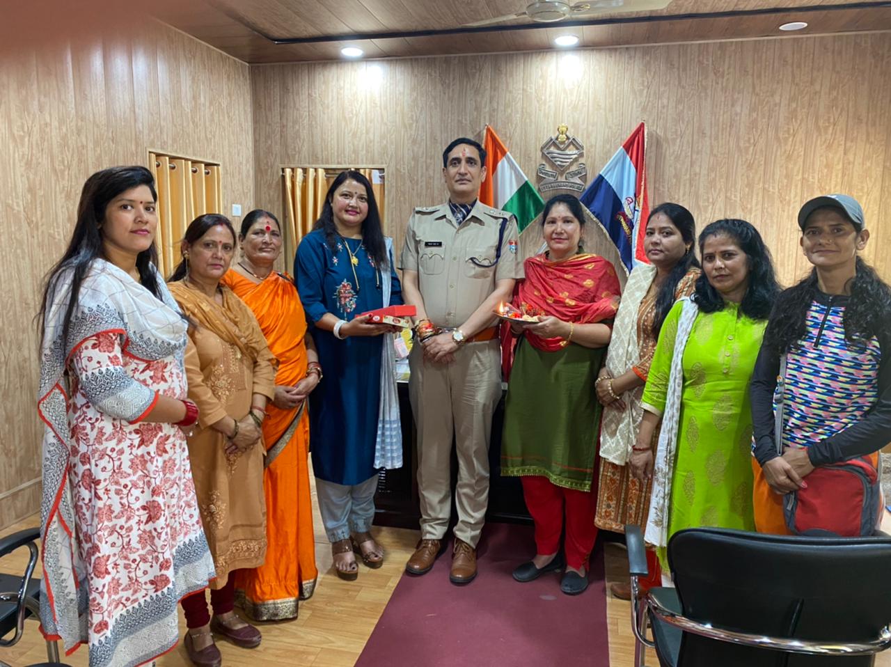अल्मोड़ा-आज भारतीय जनता पार्टी महिला मोर्चा द्वारा रक्षाबंधन कार्यक्रम का आयोजन किया गया,जिसमें कोरोना वॉरियर्स जिन्होंने विपरीत समय में देश हित में फ्रंटलाइन वर्कर्स के रूप में काम किया उनको सम्मानित करते हुए रक्षा धागा एवं तिलक लगाकर सम्मानित किया गया।इसी कार्यक्रम में सर्वप्रथम अल्मोड़ा जिले के वरिष्ठ पुलिस अधीक्षक पंकज भट्ट को भाजपा प्रदेश मंत्री किरण पंत द्वारा रक्षाधागा पहनाकर एवं तिलक लगाकर सम्मानित किया गया।वरिष्ठ पुलिस अधीक्षक पंकज भट्ट ने समस्त महिला मोर्चा का धन्यवाद किया।इस कार्यक्रम में प्रदेश मंत्री किरण पंत, महिला मोर्चा महामंत्री लीला बोरा, जिला उपाध्यक्ष प्रेमा मेर,जिला मंत्री हेमा सुप्याल,जिला मंत्री रेखा आर्य, मीना नेगी,सुनिधि शाह आदि अनेक महिलाएं उपस्थित रहीं।इस कार्यक्रम में क्रिकेट कोच हीरा कनवाल एवं पूर्व उपाध्यक्ष कमला भट्ट भी मौजूद रहे।