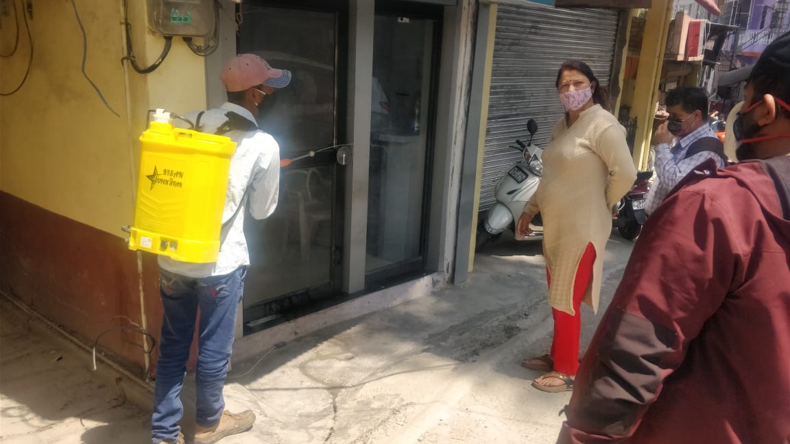 अल्मोड़ा-आज कोरोना के बढ़ते प्रकोप को देखते हुए भारतीय जनता पार्टी की महिला मोर्चा की प्रदेश मंत्री किरन पंत ने साई बाबा कालोनी,रानीधारा रोड एवम् आस पास के रास्तों,मकानों,एटीएम आदि को सैनेटाईज करवाया।इस अवसर पर उन्होंने कहा कि बीते दिनों एडम्स कम्पाउन्ड के आस पास एवं साई बाबा कालोनी में कई लोगों की कोरोना रिपोर्ट पाजिटिव आयी है।इसलिए सभी को अधिक सावधानी बरतने की आवश्यकता है।उन्होंने हर सप्ताह सैनेटाईजेशन करवाने हेतु प्रशासन एवं नगरपालिका को भी पत्र लिखकर सूचित किया है।इस कार्य में उनके साथ ललित बिष्ट,विपिन जोशी,अमन वर्मा,दीपक तिवारी आदीशि लोगों ने योगदान दिया।