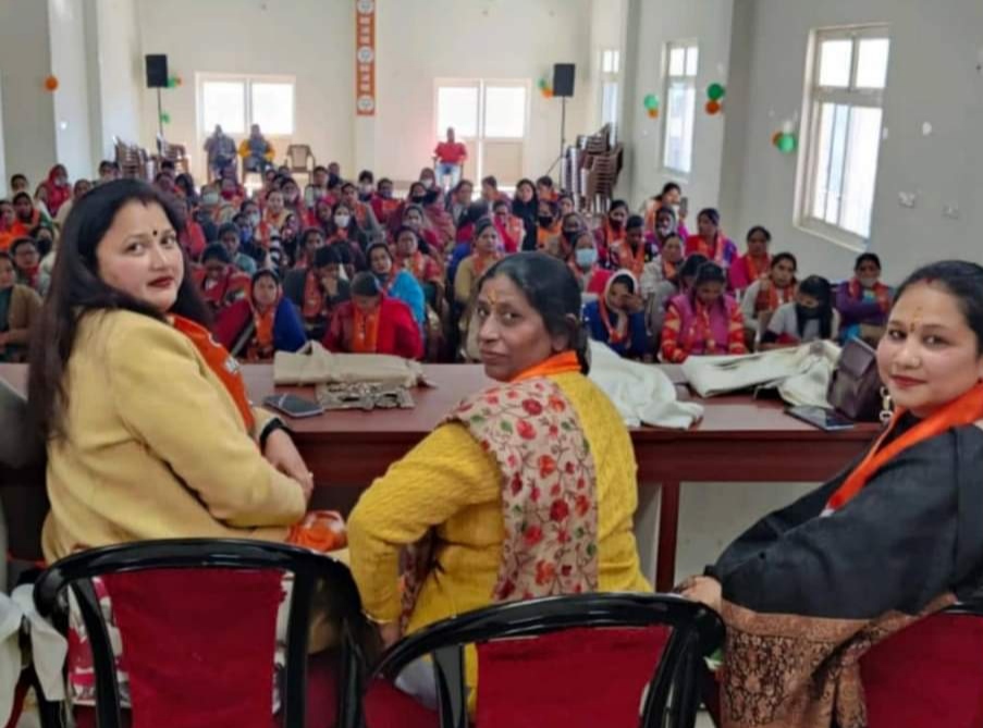 पिथौरागढ़-सोमवार को पिथौरागढ़ जिले में भाजपा महिला मोर्चा सम्मेलन का आयोजन जिलाध्यक्ष श्रीमती माला सॉन की अध्यक्षता में किया गया। जिसमें पिथौरागढ़ प्रभारी श्रीमती किरण पंत मुख्य वक्ता के रूप में उपस्थित रहीं।श्रीमती किरण पंत ने 2022 में सभी कार्यकर्ताओं को एकजुट होकर पुनः भाजपा सरकार बनाने का आह्वाहन किया।इस कार्यक्रम में उनके साथ पिथौरागढ़ विधायक श्रीमती चंद्रा पंत,जिला पंचायत अध्यक्ष श्रीमती दीपिका बोरा, कुमाऊं संयोजिका उमा वदालिनी, श्रीमती पूनम पालीवाल सहित अनेक महिलाएं उपस्थित रहीं।इस अवसर पर लगभग चार दर्जन महिलाओं ने भाजपा की सदस्यता ग्रहण की।