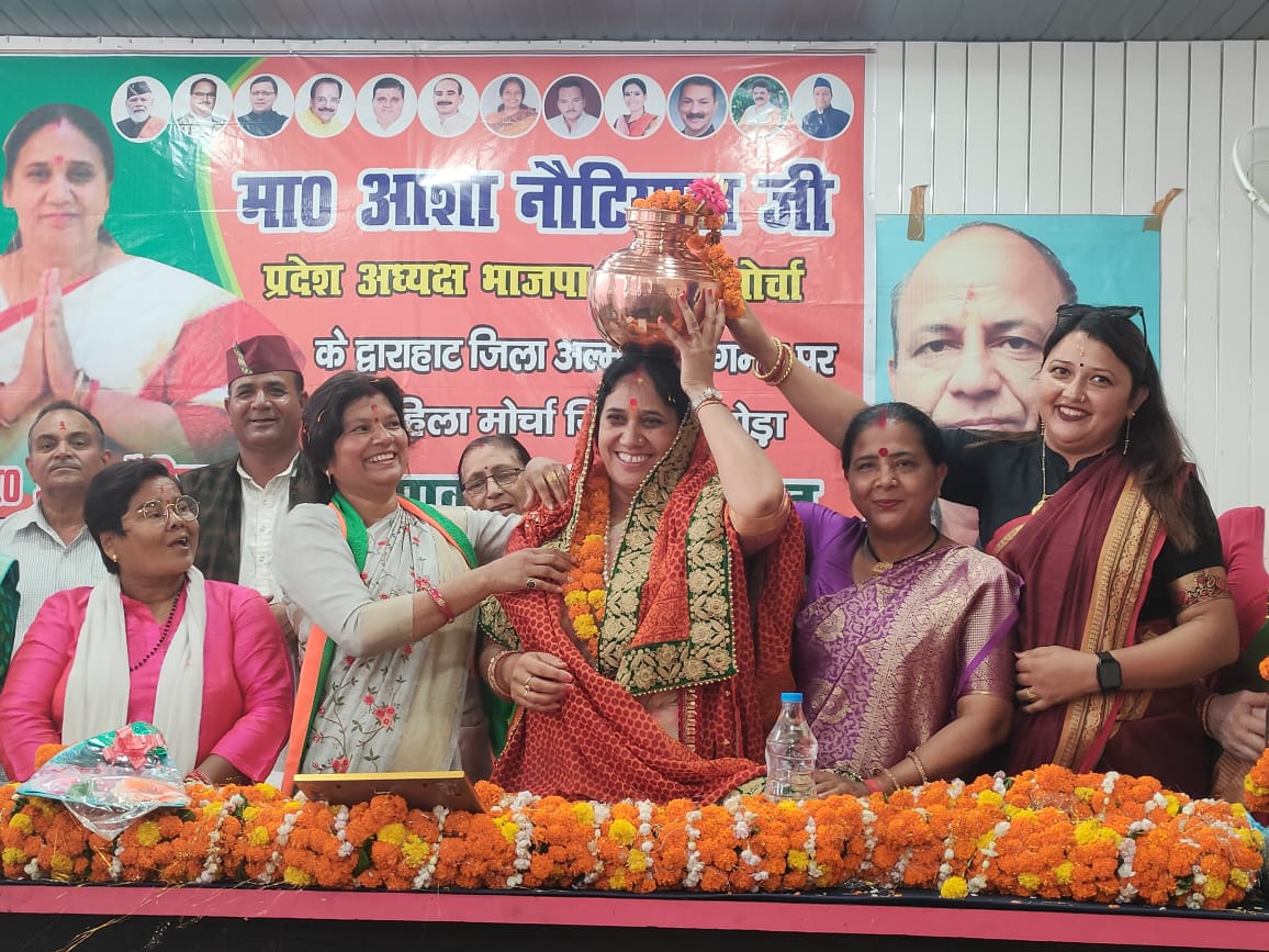 अल्मोड़ा-गुरूवार को द्वाराहाट आगमन पर भारतीय जनता पार्टी महिला मोर्चा प्रदेश अध्यक्ष श्रीमती आशा नोटियाल का महिला मोर्चा द्वारा भव्य स्वागत किया गया।जिसमें महिला मोर्चा प्रदेश मंत्री श्रीमती किरण पंत के साथ पूर्व जिलाध्यक्ष महिला मोर्चा श्रीमती रमा जोशी,जिला मीडिया प्रभारी पूनम पालीवाल,जिला महामंत्री लीला बोरा,वरिष्ठ महिला मोर्चा नेत्री श्रीमती राधिका जोशी,द्वाराहाट महिला मोर्चा की समस्त महिलाएं उपस्थित रही।इस अवसर पर मोर्चा की महिलाओं द्वारा प्रदेश अध्यक्ष को स्मृति चिन्ह देकर सम्मानित किया गया।प्रदेश अध्यक्ष ने एकजुट होकर महिला मोर्चा एवं भाजपा को और अधिक मजबूत बनाने की बात कही।