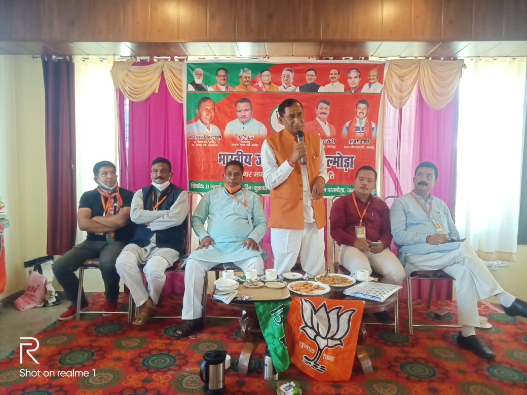 अल्मोड़ा-भारतीय जनता पार्टी नगर मंडल अल्मोड़ा की कार्यसमिति की बैठक का शुभारंभ शुक्रवार को दीप प्रज्वलन कार्यक्रम के साथ मंडल प्रभारी जिला महामंत्री महेश नयाल, जिला सहकारी बैंक के अध्यक्ष ललित लटवाल,प्रदेश कार्यसमिति सदस्य गोविंद पिलख्वाल,नगर अध्यक्ष कैलाश गुरनानी द्वारा किया गया।कार्यक्रम में मुख्य वक्ता के रूप में जिलाध्यक्ष रवि रौतेला ने उपस्थित कार्यकर्ताओं का मार्गदर्शन किया तथा 2022 के चुनाव के लिए मजबूती के साथ कार्य करने की दिशा निर्देश दिए।इस अवसर पर उपस्थित कार्यक्रम के मुख्य अतिथि जिले के प्रभारी मंत्री बिशन सिंह चुफाल द्वारा कार्यकर्ताओं को संगठन को कैसे मजबूत बनाया जाए और किस प्रकार से बूथ स्तर पर कार्य कर भाजपा की दोबारा सरकार प्रदेश में बनाई जाए इस संदर्भ में महत्त्वपूर्ण दिशा निर्देश दिए और अपने संस्मरण व अनुभव कार्यकर्ताओं के बीच साझा किए।उन्होंने कहा कि भारतीय जनता पार्टी में साधारण कार्यकर्ता भी उच्चतम पद को अपनी मेहनत के बल पर प्राप्त कर सकता है।बैठक को विधानसभा उपाध्यक्ष रघुनाथ सिंह चौहान ने संबोधित करते हुए अल्मोड़ा नगर में सरकार द्वारा किए गए विकास कार्यों का विवरण कार्यकर्ताओं के समक्ष रखा तथा सरकार के विकास कार्यों को जन जन तक पहुंचाने का कार्यकर्ताओं से आह्वान किया।बैठक को जिला सहकारी बैंक के अध्यक्ष ललित लटवाल व गोविंद पिलख्वाल ने भी संबोधित किया।इस अवसर पर जिलाध्यक्ष रवि रौतेलाप्रभारी मंत्री बिशन सिंह चुफाल,विधानसभा उपाध्यक्ष रघुनाथ सिंह चौहान,प्रदेश उपाध्यक्ष कैलाश शर्मा,जिला सहकारी बैंक के अध्यक्ष ललित लटवाल,प्रदेश कार्यकारिणी सदस्य गोविंद पिलख्वाल,नगर अध्यक्ष कैलाश गुरुरानी,अजय वर्मा,किरण पंत,जिला उपाध्यक्ष दर्शन रावत,जिला मंत्री विनीत बिष्ट,जिला कोषाध्यक्ष तुषार कांत शाह,धर्मेंद्र बिष्ट,अनुसूचित मोर्चा जिलाध्यक्ष धर्मवीर आर्य,अल्पसंख्यक मोर्चा जिला अध्यक्ष राजा खान,नगर महामंत्री मनोज जोशी,संजय शाह रिख्खू नगर उपाध्यक्ष,देवेंद्र सत्यपाल, सुनील जोशी,माया जोशी,बीना नयाल, नगर मंत्री आशीष कुमार,करन टम्टा, दीपक पांडे,रमेश मेर,दीप्ति सोनकर, राधिका जोशी,चंपा पांडे,रमा जोशी, इंदु प्रभा जोशी,विद्या बिष्ट,मीना भैसोड़ा,मनीष जोशी,कृष्ण बहादुर सिंह, संजीव जोशी,तस्लीम अंसारी, लीला बोरा,हेमा सुप्याल,भावेश जोशी, मुनीर अंसारी,मीना नेगी,श्वेता अग्रवाल,अर्जुन बिष्ट,सलमान खान, संदीप सैली,मुकुल कुमार,रमेश लाल, आशीष गुरूरानी,निखिल टम्टा,वैभव बिष्ट,दीक्षित जोशी आदि उपस्थित थे।कार्यसमिति की अध्यक्षता नगर अध्यक्ष कैलाश गुरुरानी तथा संचालन महामंत्री मनोज जोशी व संजय साह रिख्खू ने किया।