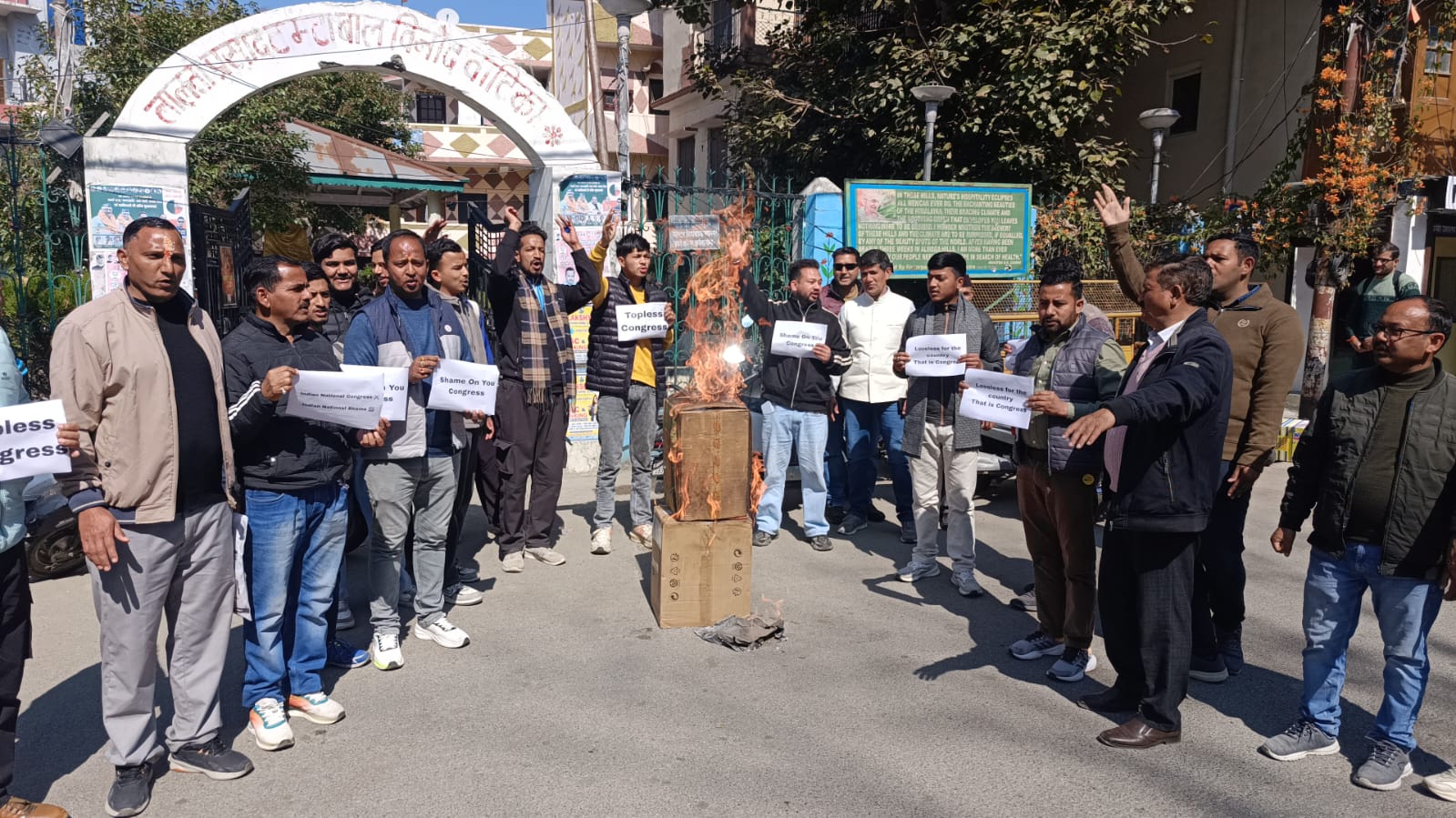 अल्मोड़ा-नई दिल्ली में इंडिया ए-आई इम्पैक्ट समिट 2026 के दौरान युवा कांग्रेस कार्यकर्ताओं के शर्टलेस विरोध प्रदर्शन पर भारतीय जनता युवा मोर्चा ने अल्मोड़ा गांधी पार्क में कांग्रेस एवं राहुल गांधी का पुतला दहन किया। साथ ही भाजयुमो कार्यकर्ताओं ने पूरी कांग्रेस पार्टी की कड़ी निंदा की है। भाजयुमो कार्यकर्ताओं ने कहा कि कांग्रेस पार्टी के कार्यकर्ताओ की आदत है कि वह देश के साथ साथ विदेशो में भी भारत का नाम बदनाम करने का प्रयास करते रहते है जिसके कई उदाहरण देखे जा सकते है। भाजयुमो जिलाध्यक्ष पंकज भाकुनी ने राहुल गांधी पर तंज कसते हुए कहा कि युवराज अपने वक्तव्यो में इस प्रकार की बातों को ज़ाहिर करते रहते है जो बिल्कुल उचित नही है।उन्होने कहा कि युवा कांग्रेस के कार्यकर्ताओं द्वारा अर्ध नग्न प्रदर्शन करना दर्शाता है कि भारत विरोधी गतिविधियों में यदि किसी का नाम लिया जाए तो कांग्रेस प्रथम स्थान पर है। प्रदर्शन के दौरान भाजयुमो कार्यकर्ताओं ने कांग्रेस पार्टी मुर्दाबाद के नारे भी लगाए।पुतला दहन कार्यक्रम में भाजयुमो जिलाध्यक्ष पंकज भाकुनी, नगर अध्यक्ष नीरज सांगा, मेयर अजय वर्मा, पूर्व भाजपा जिलाध्यक्ष गोविंद पिलख्वाल,भाजयुमो प्रदेश प्रवक्ता नमन गुरुरानी,भाजपा नगर अध्यक्ष विनीत बिष्ट,कैलाश गुरुरानी,ललित मेहता,हरीश कनवाल,नवीन बिष्ट,देवेंद्र भट्ट,रेखा आर्य,गौरव बिष्ट,शुभम रौतेला,त्रिलोक रौतेला,राजेंद्र भंडारी,अभिषेक तिवारी, खजान पांडे,चंद्रशेखर पालीवाल सहित दर्जनों कार्यकर्ता उपस्थित रहे।