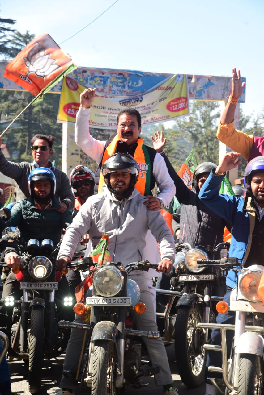 अल्मोड़ा-मुख्यमंत्री पुष्कर सिंह धामी के द्वारा नकल विरोधी कानून पारित होने पर भारतीय जनता युवा मोर्चा जिला अल्मोड़ा के युवाओं द्वारा बाइक रैली एवं गोष्ठी का आयोजन कर मुख्यमंत्री पुष्कर सिंह धामी का धन्यवाद ज्ञापित किया।कार्यक्रम में मुख्य वक्ता प्रदेश उपाध्यक्ष कैलाश शर्मा व प्रदेश मंत्री अल्मोड़ा जिला प्रभारी रोहित ओझा की विशेष उपस्थित रही।कार्यक्रम में प्रदेश उपाध्यक्ष कैलाश शर्मा,युवा मोर्चा जिलाध्यक्ष राजन चंद्र जोशी,प्रदेश मंत्री रोहित ओझा,जिला उपाध्यक्ष कैलाश गुरुरानी,जिला मंत्री महेश बिष्ट,नगर अध्यक्ष भाजयुमो चंदन बहुगुणा,मण्डल अध्यक्ष कन्हैया बिष्ट,नगर अध्यक्ष अमित शाह,पूर्व सभासद मनीष जोशी,नगर महामंत्री मनोज जोशी,अर्जुन बिष्ट,प्रकाश बिष्ट,मंडल महामंत्री मनीष बिष्ट, सुन्दर मटियानी,लोकेश कालाकोटी,महेश नयाल देवाशीष नेगी सहित सैकड़ों कार्यकर्ता मौजूद रहे।