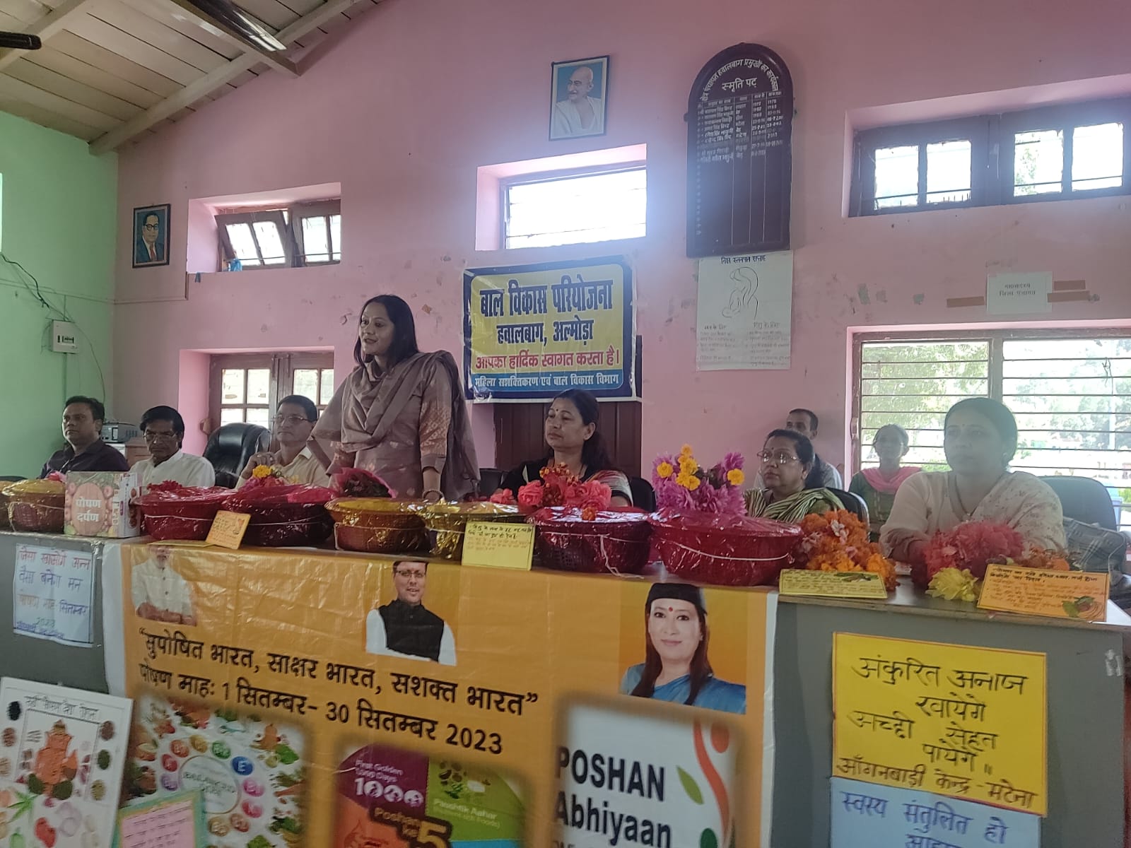 अल्मोड़ा-आज बाल विकास परियोजना हवालबाग के तत्वाधान में ब्लॉक सभागार हवालबाग में पोषण कार्यक्रम सम्मेलन आयोजित किया गया।कार्यक्रम में ब्लॉक प्रमुख श्रीमती बबीता भाकुनी ने अपने उद्बोधन में एक स्वस्थ परिवार में महिलाओं की भूमिका की सराहना की तथा पोषण के प्रति जागरूक रहने का आह्वान किया।बाल विकास परियोजना अधिकारी श्रीमती विनीता सक्सेना द्वारा पोषण के पांच सूत्र पर विस्तार से जानकारी दी गई।ज्येष्ठ प्रमुख गोपाल सिंह खोलिया ने महिलाओं से आंगनबाड़ी केंद्रों की सेवाओं का भरपूर लाभ लेने का आह्वान किया। खंड विकास अधिकारी केसर सिंह बिष्ट ने स्वच्छता एवं मेरी माटी मेरा देश के बारे संबंधी विस्तार से जानकारी दी। रंजन तिवारी ने डायरिया तथा अनीमिया रोगों से बचाव के बारे में जानकारी दी।कार्यक्रम में 10 गर्भवती महिलाओं को पोषण किट तथा महालक्ष्मी किट वितरित किए गए। कार्यक्रम के दौरान मोटे अनाज़ एवं स्थानीय सब्जियों की प्रदर्शनी लगाई गई।स्थानीय गांव में एक पोषण अभियान रैली निकाली गई।कार्यक्रम में उपरोक्त के साथ ही सुपरवाइजर श्रीमती आशा भैंसोड़ा,श्रीमती बसु पांडेय, श्री मती हंसी रौतेला सहित सैकड़ों महिलाएं और ग्रामीणजन उपस्थित थे।संचालन श्रीमती करुणा टम्टा ने किया।