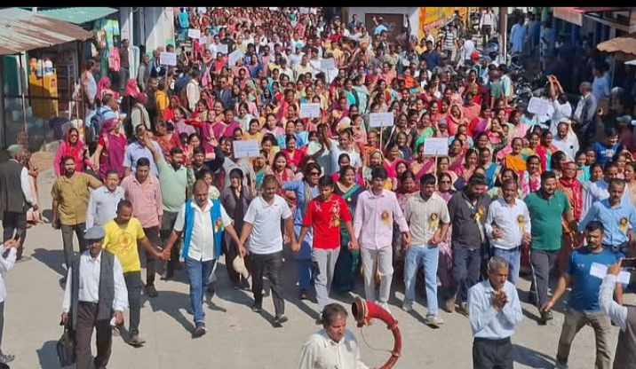 कहा कि मांगों पर प्रशासन की ओर से कोई ठोस कदम नहीं उठाया जा रहा है।प्रसव,दुर्घटना व आपातकालीन स्थिति में मरीजों को समय पर उपचार नहीं मिलता,जिससे कई लोगों को अपनी जान गंवानी पड़ती है।जुलूस में महिलाएं,युवा,बुजुर्ग, व्यापारी हुए शामिल