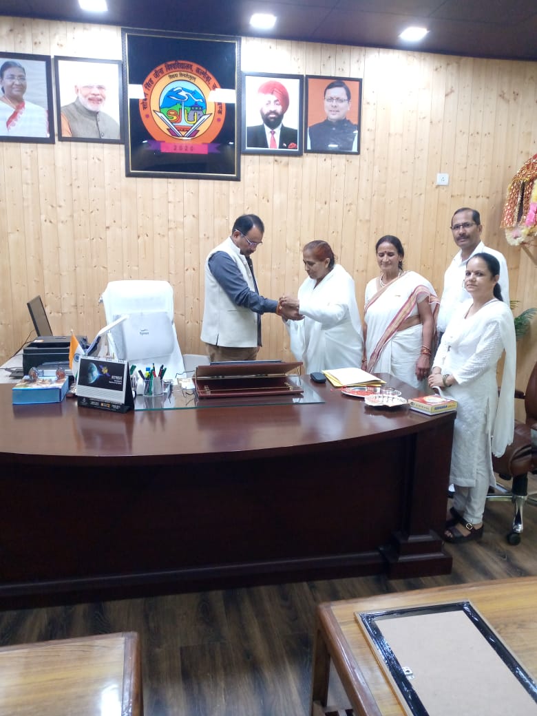 अल्मोड़ा-सोबन सिंह जीना विश्वविद्यालय में प्रजापति ब्रह्मकुमारी ईश्वरीय विश्वविद्यालय के क्षेत्रीय संस्थान,अल्मोड़ा के सदस्यों ने आकर भेंट की।विश्वविद्यालय के कुलपति प्रो सतपाल सिंह बिष्ट को संस्थान की दीदीयों ने रक्षाबंधन की अग्रिम शुभकामनाएं देते हुए राखी बांधी और उन्होंने विद्यार्थियों के हित में किये जा रहे रचनात्मक कार्यों के लिए उनकी सराहना की। इस अवसर पर विद्यार्थियों को आध्यात्मिक सूक्तियों के आधार पर जीवन बेहतर बनाने के लिए भी चर्चा हुई। उन्होंने इस अवसर पर कुलपति प्रो बिष्ट को आध्यात्मिक सूक्ति का चिन्ह भेट किया।विश्वविद्यालय को नशा उन्मूलन के लिए अपना सहयोग देने को लेकर बात कही। इस दौरान संस्थान के बी. के. नीलम, हेमेंद्र जोशी, सावित्री सांगा, नीलम और जोशी शामिल रहे।