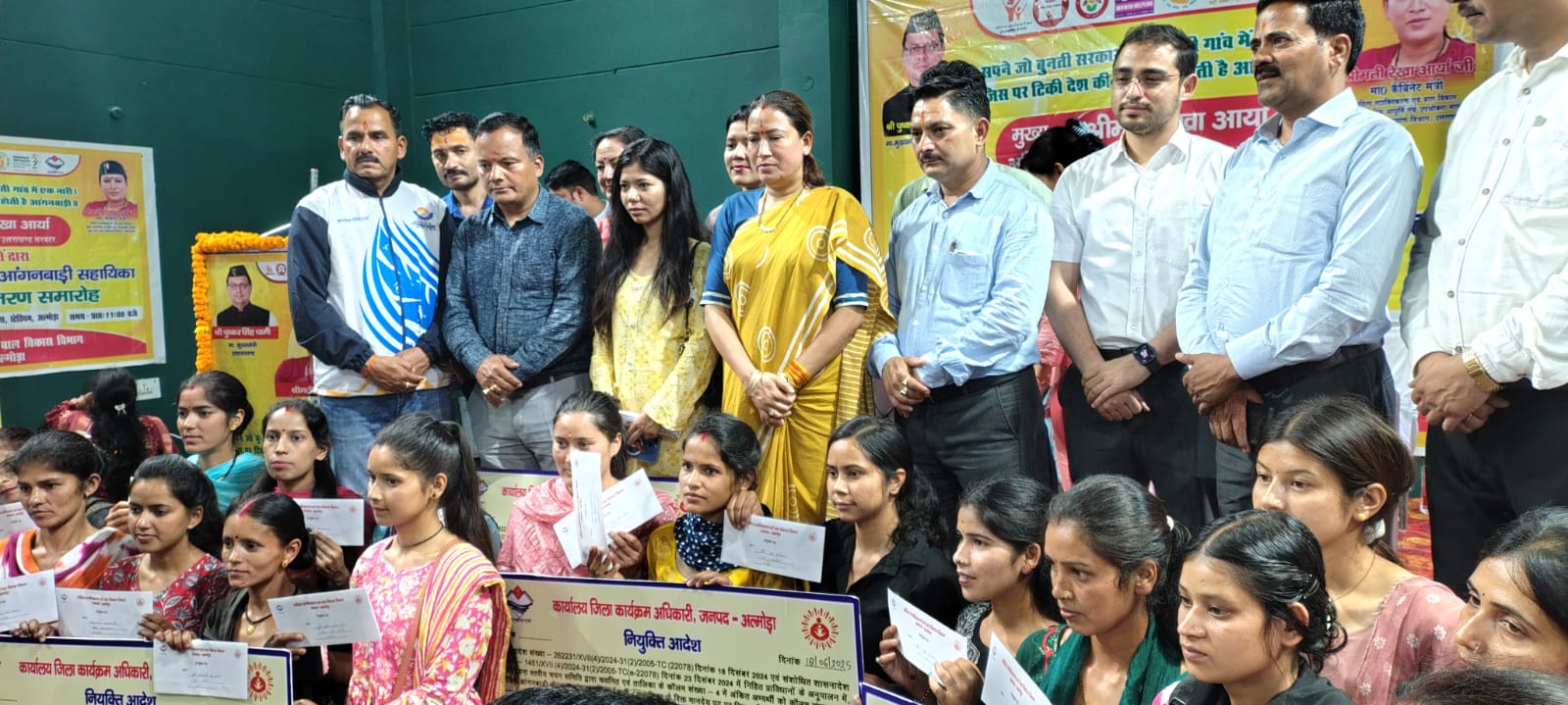 अल्मोड़ा-आज महिला सशक्तिकरण एवं बाल विकास मंत्री रेखा आर्या ने अल्मोड़ा जनपद में चयनित की गई सैकड़ो आंगनबाड़ी कार्यकत्रियों और सहायिकाओं को नियुक्ति पत्र वितरित किए।यह आयोजन हेमवती नंदन बहुगुणा स्टेडियम के सभागार में किया गया।महिला सशक्तिकरण एवं बाल विकास विभाग ने हाल ही में पूरे प्रदेश में 6330 आंगनबाड़ी सहायिकाओं और 722 आंगनबाड़ी कार्यकत्रियों यानी कुल मिलाकर 7052 पदों पर भर्ती की है।इनमें से 562 नियुक्ति अल्मोड़ा जनपद में की गई है।इस अवसर पर आयोजित कार्यक्रम में मुख्य अतिथि कैबिनेट मंत्री रेखा आर्या ने कहा कि आंगनबाड़ी कार्यकत्री का पद सिर्फ रोजगार का एक माध्यम नहीं बल्कि यह सेवा का एक बड़ा अवसर है।कैबिनेट मंत्री रेखा आर्या ने कहा कि प्रदेश में पहली बार आंगनबाड़ी कार्यकत्रियों और सहायिकाओं की भर्ती ऑनलाइन मोड में आयोजित की गई और इस पूरी प्रक्रिया को सिर्फ 3 महीने के समय में पूरा कर लिया गया।कैबिनेट मंत्री रेखा आर्या ने कहा कि अब विभाग में आंगनबाड़ी कार्यकत्री व सहायिका के रूप में उच्च शिक्षित लड़कियां और महिलाएं आ रही हैं,जिससे निश्चित रूप से विभाग की कार्य क्षमता और कुशलता में बढ़ोतरी होगी।अल्मोड़ा जनपद में 50 आंगनबाड़ी कार्यकत्रियों और 512 सहायिकाओं को नियुक्ति पत्र प्रदान किए गए हैं।जनपद में 800 से ज्यादा रिक्तियां थी।कैबिनेट मंत्री रेखा आर्या ने अधिकारियों को निर्देशित किया कि बाकी पदों के लिए भी प्रक्रिया जल्द से जल्द पूरा करके नियुक्ति पत्र प्रदान करें।इस अवसर पर जिला अध्यक्ष भाजपा महेश नयाल,मुख्य विकास अधिकारी दिवेश शाशनी,जिला कार्यक्रम अधिकारी पीतांबर प्रसाद,जिला खेल अधिकारी महेशी आर्य समेत नवचयनित आंगनबाड़ी कार्यकत्रियां एवं सहायिका तथा अन्य उपस्थित थे।