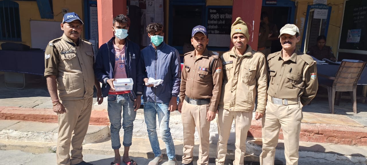 अल्मोड़ा-दिनांक 28.10.2023 को अल्मोड़ा राजपुरा निवासी नीरज पंवार द्वारा कोतवाली अल्मोड़ा में तहरीर दी कि दिनांक- 27.10.2023 को उसके घर से उसकी लाईसेन्सी पिस्टल एक जिंदा कारतूस सहित चोरी हो गई है। जिस पर कोतवाली अल्मोड़ा पुलिस द्वारा त्वरित कार्यवाही करते हुए धारा 380 भादवि के अन्तर्गत एफआईआर पंजीकृत की गयी।रामचन्द्र राजगुरु वरिष्ठ पुलिस अधीक्षक अल्मोड़ा द्वारा गंभीर श्रेणी के इस मामले का तत्काल संज्ञान लेकर प्रभारी निरीक्षक कोतवाली अल्मोड़ा को शीघ्र चोरी का खुलासा कर संलिप्त अभियुक्तों की गिरफ्तारी हेतु निर्देशित किया गया।सीओ अल्मोड़ा विमल प्रसाद के पर्यवेक्षण में प्रभारी निरीक्षक कोतवाली अल्मोड़ा अरुण कुमार के नेतृत्व में चोरी का खुलासा हेतु गठित पुलिस टीम द्वारा ठोस सुरागरसी-पतारसी से सूचना संकलित कर पिस्टल व कारतूस चोरी की घटना को अंजाम देने वाले अभियुक्त सुमन कुमार व दीपक कुमार को दिनांक 28.10.2023 को ही एफआईआर दर्ज होने के 04 घंटों के अंदर बेस तिराहा लोधिया के पास से गिरफ्तार किया गया।अभियुक्तगणों के कब्जे चोरी की लाईसेन्सी पिस्टल व एक जिंदा कारतूस बरामद कर पंजीकृत एफआईआर में आवश्यक वैधानिक कार्यवाही की जा रही है।अभियुक्तगणों के आपराधिक इतिहास के सम्बन्ध में जानकारी की जा रही है।गिरफ्तार अभियुक्त की पहचान सुमन कुमार उम्र 20 वर्ष पुत्र रामायण महतो निवासी लगुनाथ वार्ड-11 पो0 पश्चमी चम्पारण बिहार हाल निवासी नियाजगंज अल्मोड़ा तथा दीपक कुमार उम्र 20 वर्ष पुत्र ललन महतो निवासी/हाल निवासी उपरोक्त के रूप में हुई है।पुलिस टीम में उ0नि0 दिनेश सिंह परिहार प्रभारी चौकी धारानौला कोतवाली अल्मोड़ा,कानि0 योगेश गोस्वामी चौकी धारानौला कोतवाली अल्मोड़ा,कानि0 हिमांशु चौकी धारानौला कोतवाली अल्मोड़ा शामिल रहे।
