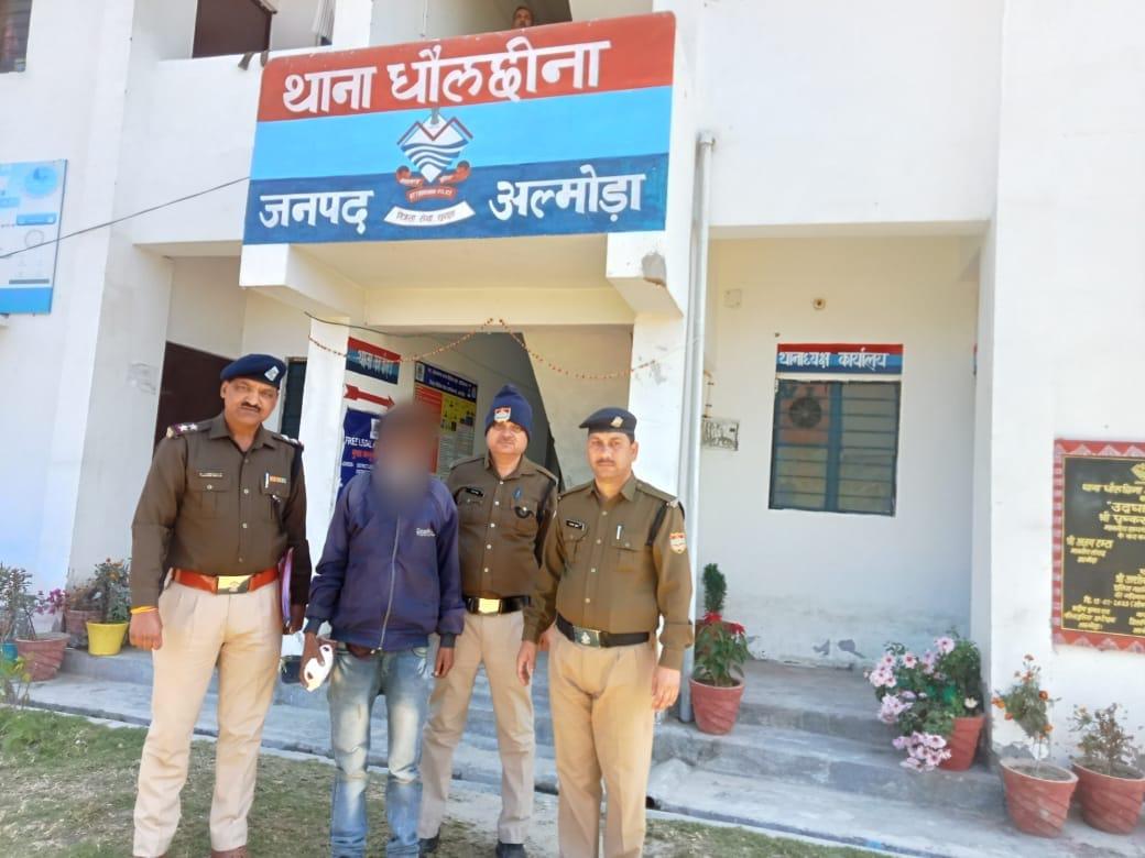 अल्मोड़ा-देवेन्द्र पींचा वरिष्ठ पुलिस अधीक्षक अल्मोड़ा द्वारा नशे के विरुद्ध जीरो टाँलरेन्स की नीति अपनाकर जनपद के समस्त थाना प्रभारियों एवं एएनटीएफ/एसओजी टीम को नशा तस्करों के विरुद्ध कड़ी कार्यवाही करने के सख्त निर्देश दिये गये है।दिनांक 26.11.2025 को अपर पुलिस अधीक्षक हरबन्स सिंह व सीओ अल्मोड़ा गोपाल दत्त जोशी के पर्यवेक्षण में थानाध्यक्ष धौलछीना सुनील सिहं बिष्ट के नेतृत्व में पुलिस टीम ने चेकिंग के दौरान पुलिस जनसहायता केन्द्र बाड़ेछीना के पास से एक व्यक्ति के कब्जे से 302 ग्राम अवैध चरस बरामद होने पर अभियुक्त को गिरफ्तार करते हुए थाना धौलछीना में एफआईआर नं0-28/2025 धारा 8/20 एनडीपीएस एक्ट के अन्तर्गत अभियोग पंजीकृत कर आवश्यक कार्यवाही की गई है।गिरफ्तार अभियुक्त का नाम/पता हरीश राम उम्र- 50 वर्ष पुत्र लछम राम निवासी मनीआगर, धौलछीना जनपद अल्मोड़ा है।बरामदगी में 302 ग्राम चरस बरामद हुई है जिसकी कीमत 60,000 रुपये है।थाना धौलछीना पुलिस टीम में अपर उ0नि0 गोकुल प्रसाद टम्टा,हेड कानि0 गोपाल गिरी,कानि0 राजेन्द्र गोस्वामी शामिल रहे।