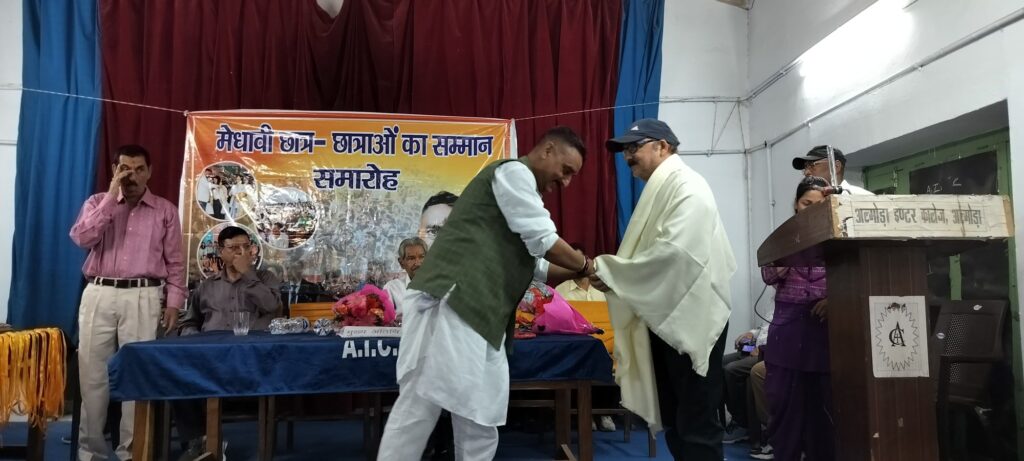 अल्मोड़ा-भाजपा के वरिष्ठ नेता एवं पूर्व दर्जा मंत्री बिट्टू कर्नाटक द्वारा आज शिक्षा के लिये छात्रों को प्रोत्साहित करने हेतु अल्मोड़ा इन्टर कालेज में एक मेधावी सम्मान कार्यक्रम आयोजित किया गया जिसमें उन मेधावी छात्रों को सम्मानित किया गया जिन्होंने अपनी कड़ी मेहनत,समर्पण और लगन से विद्यालय व अपने माता-पिता का नाम रोशन किया।कार्यक्रम का शुभारंभ करते हुए कर्नाटक ने सर्वप्रथम बोर्ड परीक्षा तथा अन्य प्रतियोगी परीक्षा के मेधावी छात्रों को मेडल,प्रतीक चिन्ह व अंगवस्त्र भेंट कर सम्मानित करते हुए कहा कि यह कार्यक्रम छात्रों की कठोर मेहनत और उपलब्धियों को सम्मानित करने का एक अवसर है।उन्होंने कहा कि छात्रों को अपने माता-पिता की तरह गुरूजनों का सम्मान करना चाहिये तथा अर्जित ज्ञान द्वारा देश हित में अपना योगदान देना चाहिये क्योंकि बुद्धि, परिश्रम और लगन से आगे बढ़ने वाले ये छात्र ही देश का भविष्य हैं।कर्नाटक ने कहा कि बोर्ड परीक्षा में प्रथम श्रेणी से उत्तीर्ण छात्रों के पठन-पाठन में शिक्षकों का महत्वपूर्ण योगदान रहा है। शिक्षा के साथ-साथ गुरूजन विद्यार्थियों के मन मे ईमानदारी, अनुशासन,राष्ट्रभक्ति की भावना ,सच्चरित्रता,स्वालम्बन आदि के प्रति उत्साह भी भरते हैं साथ ही एक समाज निर्माता के रूप में समाज के विभिन्न विषयों के अन्तर्गत उनके अधिकार कर्तव्य एवं दायित्वों से सम्बन्धित चेतना जगाकर उनका मार्गदर्शन भी करते हैं।उन्होंने कहा कि विद्यार्थियों को शिक्षा के साथ-साथ व्यायाम,खेलकूद, मनोरंजन के द्वारा अपने शरीर को तंदुरूस्त एवं स्वस्थ बनाना चाहिये।साथ ही समाज में तेजी से फैल रहे नशे रूपी दानव एवं भटकाव के मार्ग से से दूर रहना चाहिए।कालेज के प्रबन्धक सुशील चन्द्र जोशी,प्रवक्ता मनमोहन चौधरी ने अपने संबोधन में कर्नाटक का स्वागत करते हुए कहा कि इस सम्मान समारोह से सभी छात्र अति उत्साहित हैं और यह सम्मान उन्हें शिक्षा के प्रति और अधिक प्रेरणा एवं प्रोत्साहन देगा जिसके लिये हम बिट्टू कर्नाटक की सराहनीय पहल की भूरि-भूरि प्रशंसा करते हैं।उन्होने बिट्टू कर्नाटक के उज्जवल भविष्य की कामना करते हुये अपेक्षा की कि वे छात्रों के मनोबल को बढाने के लिए यह सम्मान कार्यक्रम तथा समाज के हित में किये जा रहे कार्यो को लगातार जारी रखेंगे।प्रधानाचार्य विजय रावत ने अपने वक्तव्य में कहा कि छात्रों के मनोबल को बढाने,उन्हें प्रोत्साहित करने के लिये बिट्टू कर्नाटक द्वारा आयोजित यह सम्मान कार्यक्रम की पहल सराहनीय है।इस पुनीत कार्य के लिए विद्यालय परिवार उनका सदैव आभारी रहेगा।इस अवसर पर मुख्य रूप से अखिलेश सिंह थापा,पूर्व सैनिक हयात सिंह बिष्ट,रमेश चंद्र जोशी,देवेंद्र कर्ना