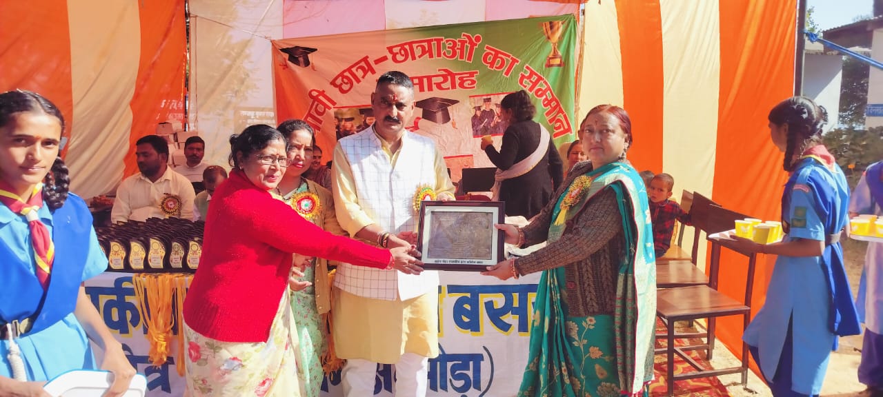 अल्मोड़ा-पूर्व दर्जा मंत्री बिट्टू कर्नाटक द्वारा गत वर्षो की भांति आज बाल दिवस के अवसर पर राजकीय इन्टर कालेज बसर के मेधावी छात्र/छात्राओं को शिक्षा के लिए प्रोत्साहित करने हेतु एक कार्यक्रम आयोजित किया गया।इस कार्यक्रम में सर्वप्रथम विद्यार्थियों द्वारा रंगारंग सांस्कृतिक कार्यक्रम तथा महिलाओं द्वारा उत्तराखंड का परम्परागत लोकनृत्य झोड़ा प्रस्तुत किया गया।तदुपरान्त श्री कर्नाटक द्वारा इन्टर कालेज तथा प्राथमिक विद्यालय के शिक्षकों,कर्मचारियों,ग्राम प्रधान तथा महिलाओं की झोड़ा टीम आदि को अंगवस्त्र / प्रतीक चिन्ह तथा मेधावी विद्यार्थियों को अंगवस्त्र,प्रतीक चिन्ह एवं मेडल से सम्मानित किया गया।विद्यार्थियों को सम्बोधित करते हुए श्री कर्नाटक ने कहा कि मेधावी छात्र/छात्राओं की सफलता के पीछे उनका कठोर परिश्रम तथा गुरूजनों का बहुत बडा त्याग व मेहनत है।उन्होंने कहा कि शिक्षक विद्यार्थियों को शिक्षित ही नहीं करते अपितु छात्र/छात्राओं के मन में ईमानदारी,अनुशासन,राष्ट्रभक्ति की भावना जागृत कर उनके अधिकार कर्तव्य एवं दायित्वों से सम्बन्धित चेतना जगाकर उनका मार्गदर्शन भी करते हैं।यही नहीं गुरूजन शिक्षण के साथ-साथ विद्यार्थियों के चरित्र का निर्माण करने के साथ ही उनमें अच्छे नैतिक मूल्यों और आदर्शो का विकास भी करते और उन्हें अच्छी शिक्षा प्रदान कर आदर्श छात्र भी बनाते हैं।उन्होंने कहा कि अपनी कठोर मेहनत से छात्र/छात्राओं ने अपने गुरूओं तथा अपने माता पिता के गौरव को बढाया है जो अत्यन्त प्रशंसा के योग्य है जिसके लिये वे बधाई के पात्र हैं । उन्होंने कहा कि यह सफलता उन्हें उनके कठोर परिश्रम से मिली है । जिससे स्पष्ट है कि मेहनत,लगन और उचित मार्गदर्शन से सफलता अवश्य मिलती है।श्री कर्नाटक ने जोर देते हुए कहा कि छात्रों को शिक्षा के साथ-साथ व्यायाम,खेलकूद,मनोरंजन के द्वारा अपने शरीर को तंदुरूस्त एवं स्वस्थ बनाना चाहिये तथा नशे एवं भटकाव के मार्ग से दूर रहना चाहिए। प्रधानाचार्या डॉ.चन्द्र कला वर्मा ने पूर्व दर्जा मंत्री बिट्टू कर्नाटक का स्वागत/अभिनन्दन करते हुये कहा कि समाज में उनके द्वारा किये गये कार्यो की जितनी सराहना की जाय वह कम है।श्री कर्नाटक द्वारा गत वर्ष मेधावी छात्राओं,शिक्षक/कर्मचारियों को सम्मानित कर उनका मनोबल बढाने तथा उन्हें प्रोत्साहित किये जाने का कार्य किया गया।इस वर्ष भी यह मुहिम जारी रखते हुए छात्राओं को सम्मानित किया जा रहा है जिसके लिए पूरा विद्यालय परिवार उनका आभारी है।इस अवसर पर मुख्य रूप से ग्राम प्रधान महेश चंद्र काण्डपाल,दीपक पोखरिया, देवेन्द्र कर्नाटक, गणेश लाल,शिक्षक ममता रानी, हेमलता भट्ट,चम्पा देवी,पुष्पेश जोशी,दी