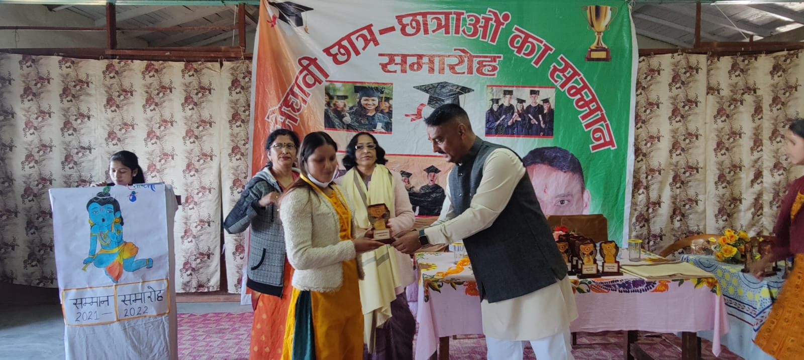 अल्मोड़ा-पूर्व दर्जा मंत्री बिट्टू कर्नाटक द्वारा विभिन्न कालेजों के छात्र/छात्राओं तथा शिक्षक/शिक्षिकाओं को शिक्षा के लिए प्रोत्साहित किये जाने हेतु उन्हें सम्मानित किये जाने का क्रम लगातार जारी रखा गया है।इसी के तहत आज उनके द्वारा आर्य कन्या इन्टर कालेज अल्मोडा की छात्राओं जिन्होंने वर्ष 2022की बोर्ड परीक्षा में प्रथम श्रेणी प्राप्त की तथा उन छात्राओं जिन्होंने विभिन्न प्रतियोगी परीक्षा में उत्कृष्ट प्रदर्शन किया को मेडल,प्रतीक चिन्ह तथा शिक्षिकाओं/कर्मचारियों को उनके शिक्षा के प्रति दिये गये योगदान हेतु अंगवस्त्र से सम्मानित किया गया।शिक्षिकायें/कर्मचारी तथा छात्रायें इस सम्मान से अति उत्साहित दिखाई दी उन्होंने इस सम्मान की भूरि-भूरि प्रशंसा की।प्रधानाचार्या सुश्री पंकज लता साह ने कहा कि इस तरह के कार्यक्रम केवल श्री कर्नाटक द्वारा ही आयोजित किये जा रहे हैं जो छात्राओं के मनोबल को बढ़ाने उन्हें शिक्षा के लिए और प्रोत्साहित करने के लिये एक बड़ी उपलब्धि होगी।उन्होंने पूर्व दर्जा मंत्री बिट्टू कर्नाटक का आभार व्यक्त करते हुये उन्हें धन्यबाद दिया कि उन्होंने शिक्षिकाओं/छात्राओं को शिक्षा के प्रति प्रेरित करने के लिये यह सराहनीय कदम उठाकर सम्मानित किये जाने की एक अच्छी पहल की है।श्री कर्नाटक ने अपने सम्बोधन में कहा कि शिक्षिकाओं ने अथक परिश्रम किया है उसी के परिणामस्वरूप छात्राओं ने बोर्ड परीक्षा में श्रेष्ठ अंक प्राप्त किये है।छात्राओं ने शिक्षिकाओं के मार्गदर्शन में कठोर मेहनत कर बोर्ड परीक्षा में उत्कृष्ट प्रदर्शन कर अपने गुरूओं तथा अपने माता पिता के गौरव को बढाया है।उन्हेांने कहा कि मेहनत,लगन और उचित मार्गदर्शन से सफलता अवश्य मिलती है विद्यार्थियों में लक्ष्य प्राप्ति के लिये स्वयं पर विश्वास होना भी जरूरी है।उन्होंने अपने संवाद में कहा कि पढाई के प्रति छात्राओं का मनोबल बढाने तथा आगामी विभिन्न प्रतियोगी परीक्षाअेां में और अधिक श्रेष्ठ मुकान हासिल करने के उद्देश्य से यह सम्मान कार्यक्रम आयोजित किया गया है जो छात्र हित में भविष्य में भी जारी रखा जायेगा।इस अवसर पर विद्यालय की समस्त शिक्षिकायें,कर्मचारी तथा छात्राओं के अभिभावक सहित प्रबंधक हेम जोशी, उप प्रबंधक रोहित सैली,उमेश रैक्वाल, दीपक पोखरिया,सुंदर सिंह बिष्ट आयोजक मंडल के सदस्य उप प्रधानाचार्या दीप्ति शाह,श्रीमती मीना भट्ट,आशा मेहता,भावना कांडपाल सहित सामाजिक कार्यकर्ता व वरिष्ठजन आदि उपस्थित रहे।कार्यक्रम का संचालन रश्मि कांडपाल द्वारा किया गया।