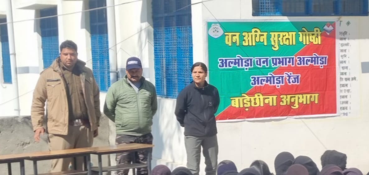 धौलछीना (अल्मोड़ा)- राजकीय कन्या इंटर कॉलेज बाडे़छीना में वन विभाग अल्मोड़ा के अंतर्गत बाड़ेछीना रेंज के अधिकारियों ने बनाग्नि सुरक्षा सप्ताह मनाया। इस दौरान गर्मियों में वनों में लगने वाली आग से होने वाले नुकसान और बचाव के लिए गोष्टी की गई।जिसमें मानव वन्य जीव संघर्ष और उनके रोकथाम के लिए स्कूली छात्राओं को जानकारी दी गई तथा वन्य जीव तथा मानव के टकराव को रोकने के उपाय के बारे में बताया गया।बनाग्नि सुरक्षा सप्ताह के अंतर्गत छात्राओं को वनों में लगने वाली आग पर नियंत्रण के उपाय, बचाव तथा फॉरेस्ट फायर एप के संबंध में विस्तार पूर्वक जानकारी दी गई।इस दौरान विभागीय कर्मचारियों ने छात्राओं को वनों से होने वाले लाभ की जानकारी दी तथा कहीं भी जंगल में लगने वाले आज की सूचना शीघ्र वन विभाग को देने की अपील की।यहा बन दरोगा मनीषा सुप्याल,वन दरोगा विनोद कुमार, वन आरक्षी हिम्मत सिंह बोरा, नरेंद्र बाराकोटी, विद्यालय के प्रधानाचार्य समस्त शिक्षक शिक्षिकाएं तथा -छात्राएं मौजूद रहे।