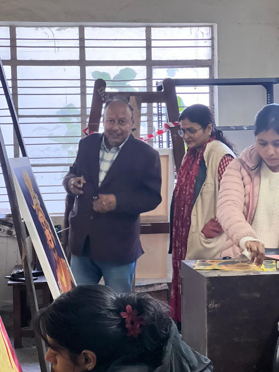 अल्मोड़ा-आज भारतीय नृत्य सम्राट श्री उदय शंकर की स्मृति में चल रही सात दिवसीय राष्ट्रीय कार्यशाला के अन्तर्गत चित्रकला विभाग मे अधिकतर कलाकारों ने अपने चित्र के कार्य को पूर्ण कर लिया है।कार्यशाला देखने आये दर्शकों से कलाकारों ने अपने चित्र निर्माण और कार्यशाला अवधि के अनुभव को साझा किया।प्रोफेसर प्रवीण सिंह बिष्ट परिसर निदेशक सोहन सिंह जीना वि वि परिसर अल्मोड़ा ने कार्यशाला में आकर चित्रो को देखा,कलाकारों से उनके चित्रों के बारे में बात की और उनके कार्यकुशलता तथा विषय के प्रति गहन चिंतन की सराहना की।डा चन्द्र सिंह चौहान सचिव उदयशंकर संगीत एवं नाट्य अकादमी फलसीमा अल्मोड़ा ने कार्यशाला का अवलोकन कर प्रतिभागियों के व्यवस्था और और उनके चित्र कार्य को देखा तथा कार्यक्रम के सफल संचालन हेतु चित्र कला विभाग के सभी सहयोगी सदस्यों का आभार व्यक्त किया।प्रो० शेखर चंद्र जोशी चित्रकला विभागाध्यक्ष ने कार्यक्रम समन्वयक प्रोफेसर सोनू द्विवेदी के संयोजक कार्य की प्रशंसा की और बताया कि मेरे द्वारा भी इनके कुशल संयोजन में चित्र बनाया गया है।कार्यशाला समन्वयक प्रोफेसर सोनू दिवेदी शिवानी ने कहा कि आज का युवा संसाधन से युक्त है उसे राष्ट्रीय हित के विषय की दिशा में बस ले जाने की आवश्यकता होती है।वह आज सोशल मीडिया के द्वारा बहुत तेजी से जानकारी एकत्र कर लेता है। कार्यशाला के दौरान प्रतिभागियों ने उदयशंकर के अल्मोड़ा प्रवास और उनके नृत्य जीवन के विविध पहलुओं को चित्रों में उभारा है। वास्तव में यहां बने चित्रों की उदयशंकर संगीत एवं नाट्य अकादमी फलसीमा अल्मोड़ा में प्रदर्शनी एक नया इतिहास बनेगी।एक स्थान पर एक ही विषय पर अलग अलग शैली और तकनीकी के भावमय चित्र देखने को मिलेंगे।आज कलाकारों की कलाकृतियों का लगभग निर्माण पूर्ण हो चुका है।चित्र शीर्षक कल्पना,रौद्र रस, उदयशंकर और अल्मोड़ा,तांडव नृत्य,विद ऐपण उदय नृत्य,शिव पार्वती,उदय का हिमालय प्रेम आदि अनेक चित्रो ने दर्शक और मीडिया बन्धुओं को कला और कलाकार के गहन चिंतन की प्रशंसा करने के लिए विवश कर दिया।उनके नृत्य की अनेक मुद्राओं,भाव भंगिमाओं को देखा जा सकता है,जिसमे नटराज नृत्य,गज हस्त मुद्रा,लयात्मक रेखांकन के वृहद खूबसूरत चित्रांकन अत्यंत आकर्षण का केंद्र बनी हुई है।कलाकारों ने उदय शंकर को भारतीय कला परंपरा और चित्रकला के विविध आयामों से जोड़ा है।कलाकारों का कहना है कि उदयशंकर के नृत्य जीवन पर कार्य करना अत्यधिक रोमांचकारी रहा है।यह कार्यशाला रविवार अपराह्न तक चलेगी।उसके बाद तैयार कलाकृतियों को उदय शंकर नाट्य अकादमी में प्रदर्शित किया जाना है।प्रमाण पत्र वितरण एवं समापन समारोह भी अकादमी में 8 दिसंबर प्रातः 11: