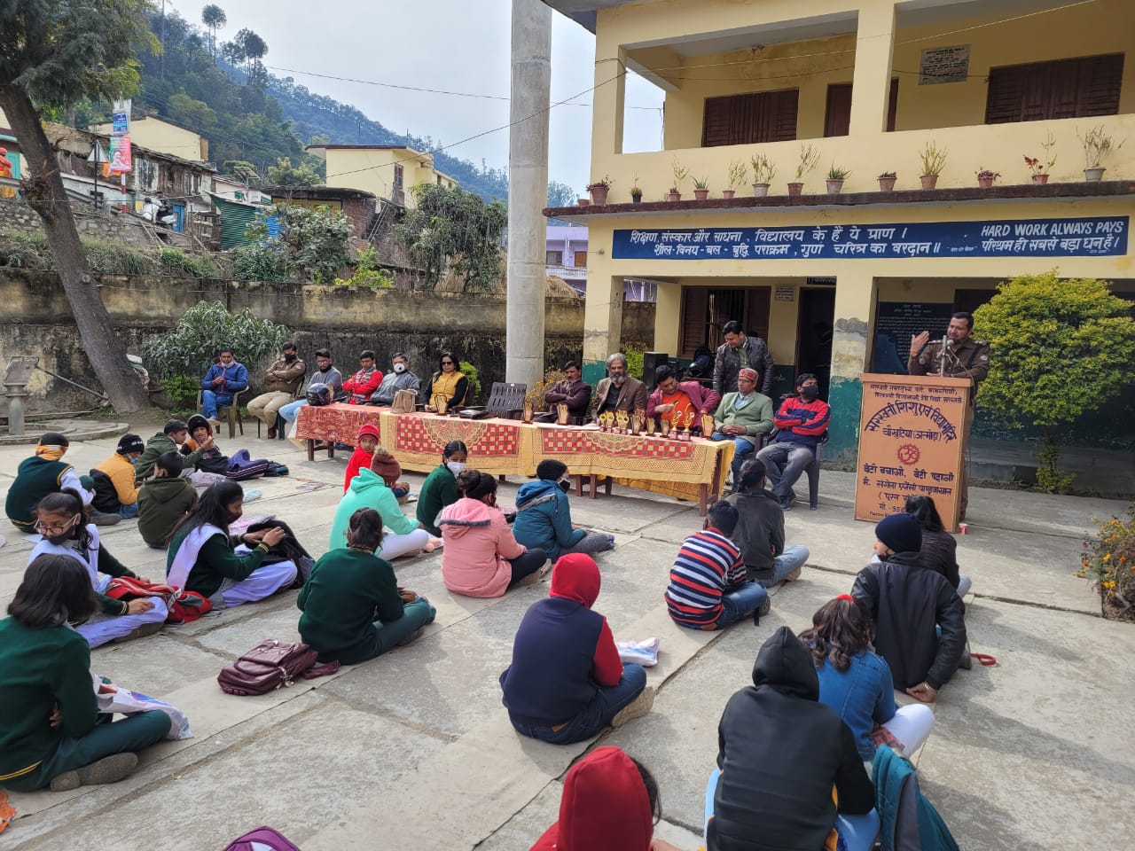अल्मोड़ा-महिला सम्बन्धी अपराधो में अंकुश लगाने व महिला सुरक्षा के दृष्टिगत एसएसपी अल्मोड़ा डा० मंजूनाथ टी०सी०के निर्देशन में थानाध्यक्ष दिनेश नाथ मंहत द्वारा सरस्वती विद्या मंदिर चौखुटिया में नमामी गंगे द्वारा आयोजित कार्यक्रम में विभिन्न स्कूलों से आये छात्र-छात्राओं को गौरा शक्ति एप ट्रैफिक आई एप के बारे में विभिन्न जानकारियां देते हुए डायल 1090, 112 तथा साइबर संबंधी अपराधों, डायल 155 260 पर सूचित करने के संबंध मैं भी जानकारी देते हुए, कोविड-19 के नियमों का पालन करने हेतु निर्देशित करते हुए मास्क वितरण किया गया।