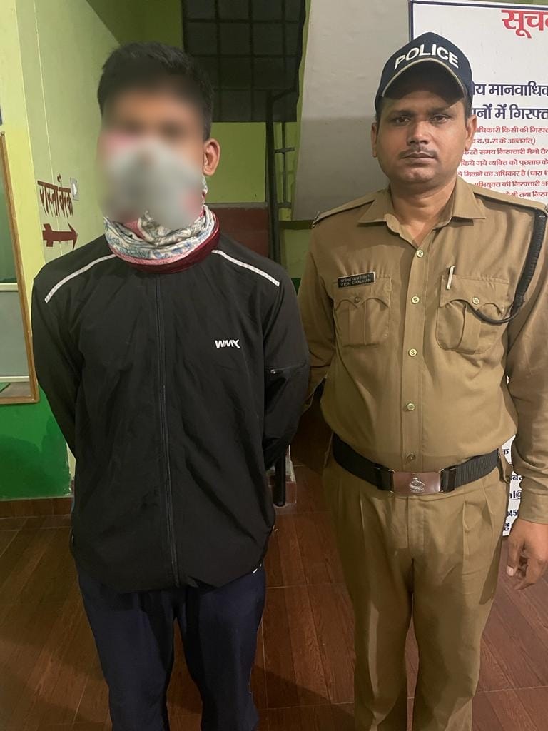 अल्मोड़ा-दिनांक 10.09.2022 चौखुटिया निवासी एक वादी की तहरीर के आधार पर थाना चौखुटिया में आईपीसी व पोक्सो अधिनियम में अभियोग पंजीकृत किया गया था।प्रदीप कुमार राय एसएसपी अल्मोड़ा द्वारा मामले का तत्काल संज्ञान लेकर पुलिस उपाधीक्षक रानीखेत व थानाध्यक्ष चौखुटिया को तत्काल टीम गठित कर आरोपी युवक को शीघ्र गिरफ्तार करने का निर्देश दिया गया। तिलकराम वर्मा सीओ रानीखेत व थानाध्यक्ष दिनेश नाथ महंत चौखुटिया द्वारा पुलिस टीम का गठन कर आरोपी युवक की गिरफ्तारी के लिए खोजबीन शुरु कर दी।गठित टीम द्वारा अथक प्रयास व साईबर सैल की मदद से दिनांक 12/09/2022 को आरोपी युवक को गिरफ़्तार कर अभियोग में आवश्यक कार्यवाही की गई।गिरफ्तार युवक का नाम गौरव अटवाल पुत्र हरीश चंद्र अटवाल निवासी ग्राम धुधलिया चौखुटिया उम्र 20 वर्ष है।