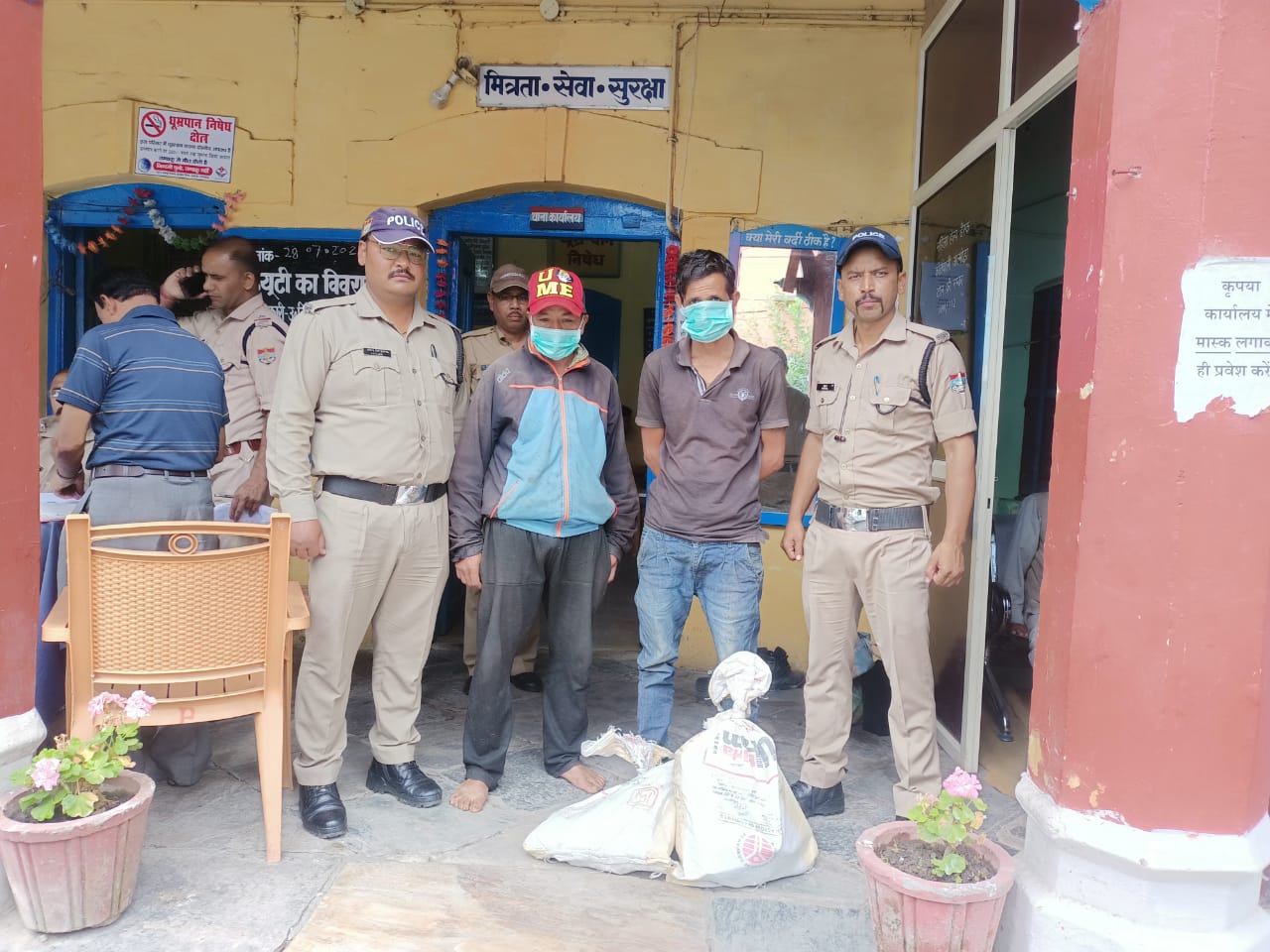अल्मोड़ा-दिनांक 27.07.20 22 को वादी अशोक सिंह पुत्र स्वर्गीय श्री आर पी सिंह निवासी कर्नाटक खोला लोअर माल रोड अल्मोड़ा के निर्माणाधीन मकान में विगत 10-12 दिनों से निर्माण सामग्री की चोरी की जा रही थी,वादी अपने मकान को किराए में दिखाने के लिए अपने ही निर्माणाधीन मकान पर पहुंचे तो उन्होंने दो व्यक्तियों को कट्टे में सामान भरकर अपने ही सीडी में चढ़ते हुए देखा तो वादी मुकदमा ने अपने सहयोगी के साथ सीडी से ऊपर चढ़कर देखा तो 02 व्यक्ति कट्टे में सामान भरकर ले जाने की तैयारी कर रहे थे इसकी सूचना वादी द्वारा 112 को दी गई।डायल 112 टीम द्वारा तत्काल मौके पर पहुंचकर दोनों ही अभियुक्तगण किशन लटवाल पुत्र गोपाल सिंह निवासी देवली लुधिया कोतवाली अल्मोड़ा तथा महेंद्र कनवाल पुत्र जवाहर सिंह निवासी खत्याडी कोतवाली अल्मोड़ा को गिरफ्तार कर वादी की तहरीर के आधार पर कोतवाली अल्मोड़ा में धारा 380/ 411 आईपीसी का अभियोग पंजीकृत कराया गया।दोनों ही गिरफ्तार अभियुक्तगणों को आज दिनांक 28.07.20.22 को माननीय न्यायालय के समक्ष पेश किया गया,माननीय न्यायालय द्वारा दोनों ही अभियुक्त गणों को न्यायिक अभिरक्षा में अल्मोड़ा जेल भेजा गया।गिरफ्तार व्यक्तियों के नाम के नाम किशन लटवाल पुत्र गोपाल सिंह निवासी लोधिया कोतवाली अल्मोड़ा एवम् महेंद्र कनवाल पुत्र जवाहर सिंह निवासी खत्याडी कोतवाली अल्मोड़ा हैं।