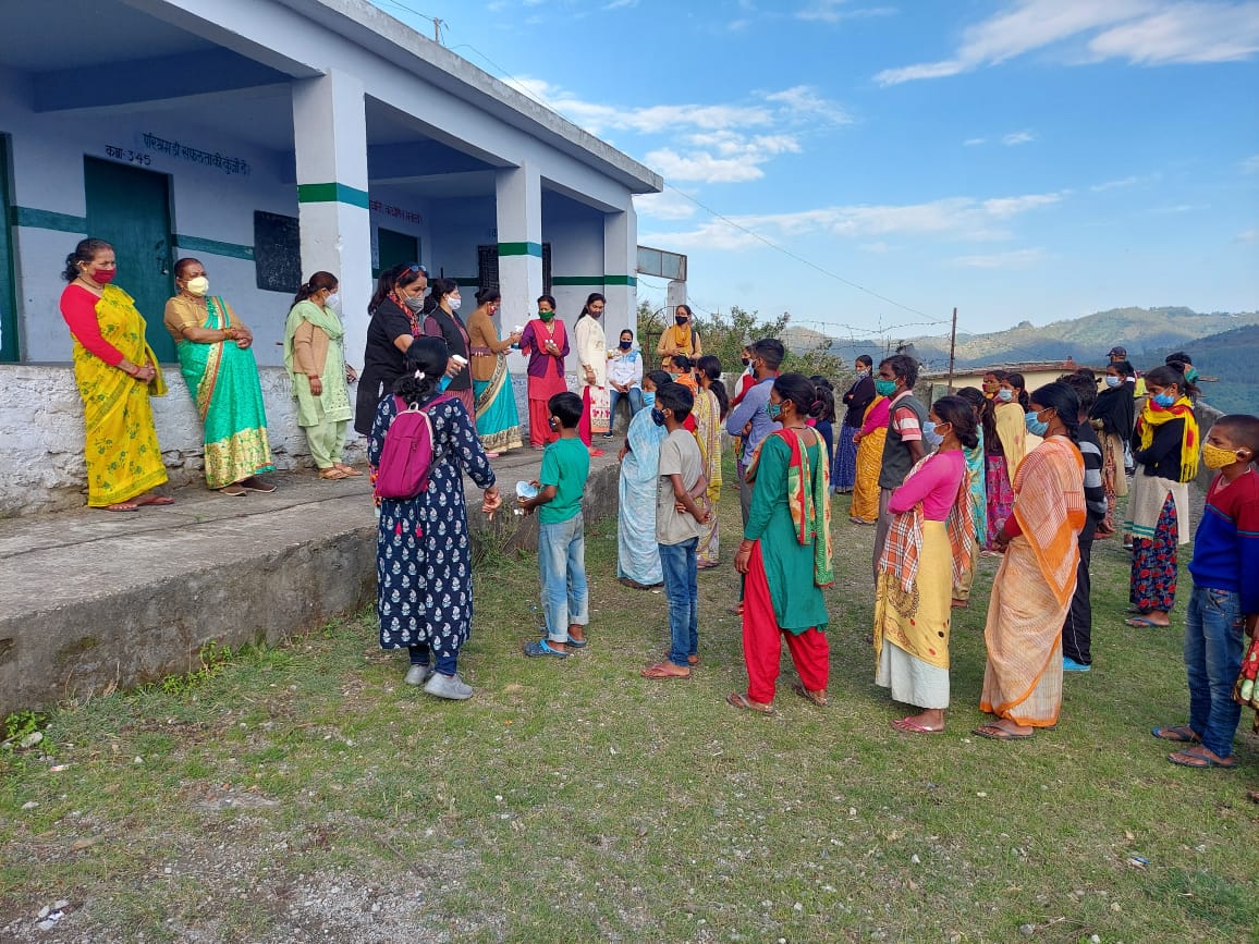 अल्मोड़ा-अल्मोड़ा की कांंग्रेस नेत्री एवं समाजसेविका गीता मेहरा ने आज फलसीमा गांव में फल,सैनेटाइजर तथा मास्क का वितरण कर ग्रामीणजनों को जागरुक करने करने का कार्य किया।विदित हो कि श्रीमती मेहरा विगत कई दिनों से अलग अलग क्षेत्रों में जाकर स्वप्रयासों से लोगों में मास्क,सैनेटाइजर तथा अन्य सामग्री का वितरण कर रही हैं।उनके द्वारा लगातार लोगों से मास्क का प्रयोग करने तथा आवश्यक होने पर ही घरों से निकलने की अपील की जा रही है।उनके द्वारा अनेक जरूरतमंद परिवारों की भी राशन आदि से मदद की गयी।पिछले कोविड काल में भी उनके द्वारा लोगों को जागरुक करने के साथ साथ ही सैनेटाइजर, मास्क तथा राशन आदि का भी वितरण किया गया था।उनके इस अभियान में गीता पाण्डे, राधा राजपूत,नीमा नगरकोटी,मुन्नी पाण्डे,हेमा जोशी,लीला शर्मा,गोबिन्दी जोशी,रंजना भण्डारी,दीपा भण्डारी, भगवती बिष्ट,स्नेहा नगरकोटी,संजना नगरकोटी आदि साथ रहे।