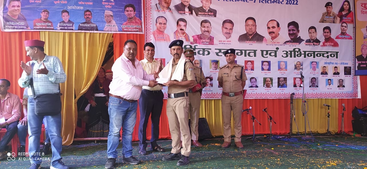 अल्मोड़ा-कानि० खुशाल राम कोतवाली अल्मोड़ा द्वारा पूर्व में मंदिर परिसर हुई बैटरी चोरी की सुरागरसी पतारसी कर व सीसीटीवी से जानकारी जुटाकर 24 घंटे के अन्दर चोरी का खुलासा करने में महत्वपूर्ण भूमिका निभाई गई,जिससे बैटरी चोरी के अभियुक्तो को गिरफ्तार कर जेल भेजा गया,चोरी हुई सभी बैटरियाँ बरामद की गई।कानि० खुशाल राम द्वारा किये गये इस सराहनीय कार्य की प्रशंसा करते हुए मां नंदा देवी मंदिर समिति द्वारा स्मृति चिन्ह भेंट कर सम्मानित किया गया।