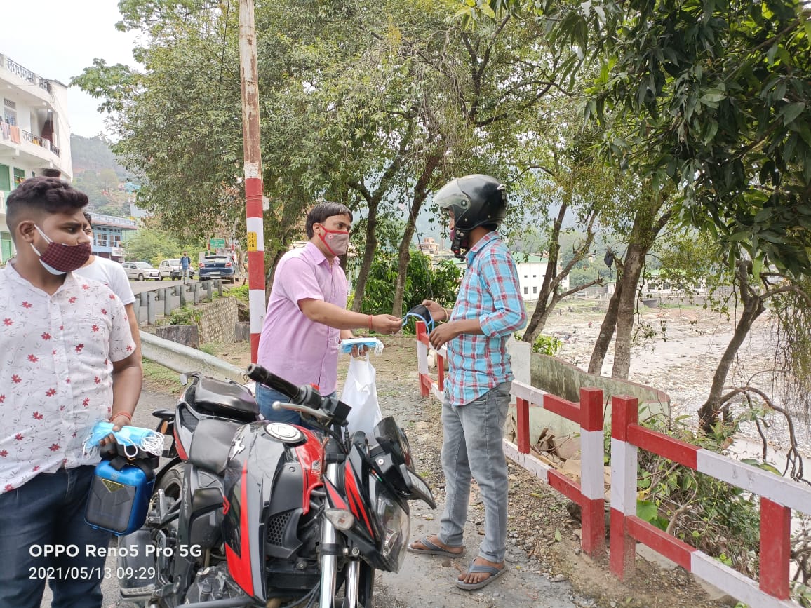 बागेश्वर-आज सुबह 9 बजे से कवि जोशी जिलाध्यक्ष युवा कांग्रेस बागेश्वर के नेतृत्व में नगर क्षेत्र में (कठायतबाड़ा कंट्रीवाइड स्कूल से सरयू पुल तिराहे तक) कोविड संक्रमण की रोकथाम के लिए मास्क,सेनेटाइजर,साबुन आदि बांटे गये व साथ में पुनः जन-जागरूक अभियान चलाया गया।कार्यक्रम में कवि जोशी जिलाध्यक्ष युवा कांग्रेस बागेश्वर,सुनील पांडेय जिला कोषाध्यक्ष,उमेश मनराल जिला वरिष्ठ महासचिव,जयदीप कुमार छात्र संघ उपाध्यक्ष,संस्कार भारती नगर महासचिव,जीवन पांडेय जिला महासचिव,राकेश भट्ट, पुष्कर पांडेय, राजेन्द्र पांडेय मौजूद थे।