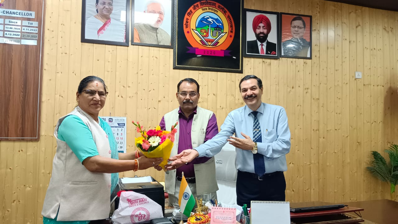 अल्मोड़ा-दर्जा राज्यमंत्री श्रीमती गंगा बिष्ट का सोबन सिंह जीना विश्वविद्यालय में आगमन हुआ।इस दौरान विश्वविद्यालय के कुलपति प्रोफेसर सतपाल सिंह बिष्ट एवं कुलसचिव डॉ देवेंद्र सिंह बिष्ट द्वारा विश्वविद्यालय की ओर से उनका स्वागत एवं अभिनंदन किया गया।इस शिष्टाचार भेंट के दौरान विश्वविद्यालय के विभिन्न विषयों को लेकर वार्ता हुई।