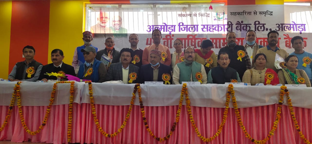 अल्मोड़ा-अल्मोड़ा जिला सहकारी बैंक की 49 वी वार्षिक निकाय की आम सभा की बैठक आज सम्पन्न हुई।कार्यक्रम का शुभारम्भ मुख्य अतिथि व विशिष्ट अतिथियों ने दीप जलाकर किया व 48 वी वार्षिक निकाय की बैठक में पास हुए प्रस्तावों को पास करके हुए किया।कार्यक्रम के मुख्य अतिथि पूर्व केंद्रीय राज्य मंत्री अजय टम्टा ने बैठक को सम्बोधित करते हुए कहा कि देश के यशश्वी प्रधानमंत्री नरेंद्र मोदी सहकारिता को रोजगार का एक बड़ा हथियार बना रहे है।गरीब,किसान को बिना ब्याज का ऋण उपलब्ध करा रहे है।किसानों के खातों में जो सम्मान निधि आ रही है वो भी सहकारी बैंकों के माध्यम से ही आ रही है।आज जहाँ पूरा विश्व कोरोना जैसे संकट से गुजर रहा है वहीं देश की अर्थव्यवस्था को आगे बढ़ाने का कार्य नरेंद्र मोदी की सरकार द्वारा किया जा रहा है।राज्य की भाजपा सरकार भी सहकारी बैंकों के माध्यम से बिना ब्याज 1 लाख से 3 लाख तक के ऋण उपलब्ध करा रही है।वही महिला समूहों को आगामी 8 मार्च को 5 लाख तक ऋण उपलब्ध कराया जाएगा।जिला सहकारी बैंक के अध्यक्ष ललित लटवाल ने कहा कि बैंक की निजी पूंजी में वर्ष 2017-18 के सापेक्ष वर्ष 2019-20 में 407.40 लाख रूपये की वृद्धि हुई।सहकारी बैंक व्यवसायिक बैंकों की भांति सीबीएस के अंतर्गत कार्य कर रहा है।अल्मोड़ा जिला सहकारी बैंक देश का पहला सहकारी बैंक है जिसका अपना क्यू आर कोड है।बैंक द्वारा शून्य प्रतिशत की दर से दिनांक 1 अप्रैल से 2020 से 31 जनवरी 2021 तक कुल 12470 लोगो को 5927.55 लाख रुपये का ऋण वितरित किया गया।इसके अतिरिक्त भविष्य के लिए मशरूम उत्पादन और केसर की खेती कर रोजगार के नए साधन उत्पन्न करने का प्रयास सहकारी बैंक के माध्यम से किया जा रहा है।बैंक द्वारा विभिन्न मदों में वर्ष 2019-20 में 14239.56 लाख रुपये का वितरण किया गया जो कि पिछले वर्ष की तुलना में 808.81 लाख रुपये अधिक है।बैठक को विशिष्ट अतिथि हयात सिह मेहरा उपाध्यक्ष उत्तराखंड सहकारी परिषद(राज्य मंत्री) के द्वारा सम्बोधित किया गया।उनके द्वारा बताया गया कि सहकारी समितियों के माध्यम से कैसे रोजगार प्राप्त किया जा सकता है और बैंक के कर्मचारी किस प्रकार लगातार बैंक को आगे बढ़ाने का प्रयास कर रहे है।बैठक का संचालन दीवान कनवाल द्वारा किया गया। कार्यक्रम में अल्मोड़ा ज़िला सहकारी बैंक के उपाध्यक्ष विक्रम सिंह शाही,प्रान्त शारीरिक प्रमुख सुनील, संचालक हृदेश मेहरा,नरेंद्र भंडारी, विनीत बिष्ट,गणेश सिह,रघुवर सिह दफौटी,घनश्याम जोशी,गोविंद सिंह,कमला बहुगुणा,मधुबाला,अनिल पंत,पुष्पा बिष्ट,महेंद्र सिंह कनवाल, मोहन चौहान,मनोहर सिह मर्तोलिया, रणजीत सिंह राणा,राज्य सहकारी बैंक संचालक रमेश बहुगुणा,सचिव महाप्रबंधक नरेश चंद्र,पूर्व ब्लॉक प्रमुख सूरज सिराड़ी,बार एशोसिएशन के अध्यक