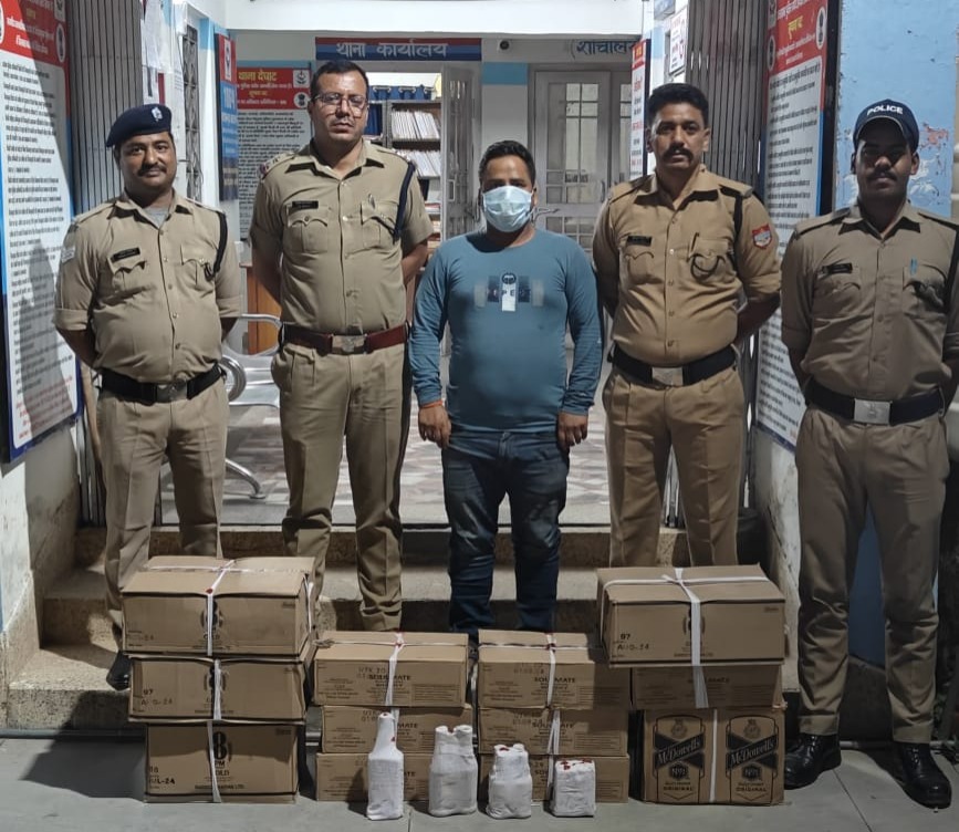 अल्मोड़ा-जनपद की देघाट पुलिस ने होटल से भारी मात्रा में अवैध अंग्रेजी शराब बरामद कर संचालक को गिरफ्तार किया है। एसएसपी देवेन्द्र पींचा के निर्देशों पर जनपद की पुलिस त्योहारी सीजन को देखते हुए अवैध मादक पदार्थों के विरुद्ध कार्यवाही कर रही है। बुधवार की रात्रि थानाध्यक्ष देघाट दिनेश नाथ महंत के नेतृत्व में देघाट पुलिस द्वारा देघाट बाजार क्षेत्र में होटल, ढाबों की चेकिंग की जा रही थी। चेकिंग के दौरान एक होटल संचालक बालम सिंह पुत्र स्व भवान सिंह बिष्ट निवासी ग्राम फतेहपुर भरसौली, देघाट के कब्जे से 12 पेटियों से अवैध अंग्रेजी शराब बरामद होने पर आरोपी को गिरफ्तार कर थाना देघाट में धारा 60 आबकारी अधिनियम में अभियोग पंजीकृत किया गया। पूछताछ में आरोपी ने बताया कि वह ठेकों से थोड़ा-थोड़ा करके शराब खरीद कर अपने होटल में लोगों को बेचता है, जिससे मुनाफा अर्जित करता है। बरामद शराब की कीमत 97 हजार रुपये आंकी गई है। यहाँ पुलिस टीम में थानाध्यक्ष देघाट दिनेश नाथ महन्त, हेड कांस्टेबल तरुण मिश्रा, कांस्टेबल नीरज सिंह बिष्ट, मदन सिंह बिष्ट, कार्तिक बोरा शामिल रहे।