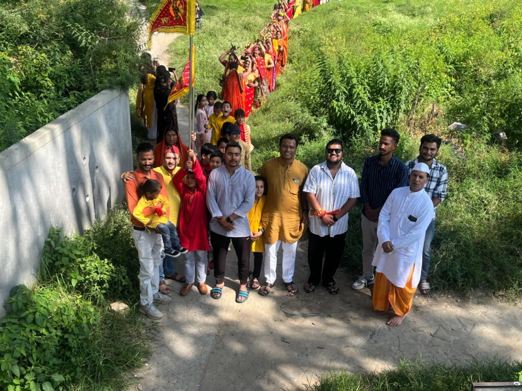 शोभायात्रा में स्थानीय महिलाएं,श्रद्धालु भक्तजन, माताएं,बहनें,बेटियां,युवा,श्रद्धालु जनों ने बढ़-चढ़कर मां के जयकारे के साथ मंगल कामनाएं की तथा लोक कल्याण एवं सभी के स्वास्थ्य,विश्व शांति,प्रसन्नता,समृद्धि के लिए माता की कृपा के लिए आह्वान किया। प्रार्थना करते हुए कार्यक्रम में शामिल हुए। शोभायात्रा में दीवान सिंह बिष्ट वरिष्ठ अधिवक्ता,कल्पना कृति समिति की अध्यक्ष श्रीमती मंजू बिष्ट,उपाध्यक्ष श्रीमती नीमा नगरकोटी,दीपक कांत पांडे,कोषाध्यक्ष भुवन चंद्र त्रिपाठी, सदस्य श्रीमती भगवती त्रिपाठी, श्रीमती अनीता नेगी,मुख्य संरक्षक ‌कमल कुमार बिष्ट सहित पदाधिकारी,मोहित बिष्ट,त्रिलोक सिंह रौतेला,गीता मेहरा,मानस पब्लिक स्कूल अल्मोड़ा की छात्राएं ,शिक्षक शिक्षिकाएं,देवाशीष नेगी जिला मंत्री भाजपा,अन्नत बिष्ट,श्रीमती गीता पाण्डे सहित एक सौ से अधिक संख्या में श्रद्धालु शामिल हुए। सांयकालीन संध्या एवम सांस्कृतिक कार्यक्रम में निवर्तमान अध्यक्ष प्रकाश चंद जोशी नगर पालिका अल्मोड़ा मुख्य अतिथि के रूप में कार्यक्रम में शामिल रहेंगे साथ ही शहर और स्थानीय मोहल्ले की जनता,माताएं बहने ,विद्यालयों के छात्राओं द्वारा सांस्कृतिक कार्यक्रम एवं भजन कीर्तन प्रस्तुत किए जाने है। सांय कालीन संध्या में 5:30 से पूजा अर्चना,महाआरती ,प्रसाद वितरण के बाद भजन कीर्तन एवं सांस्कृतिक कार्यक्रम प्रस्तुत किए जाएंगे जिसमें स्थानीय कलाकारों, श्रद्धालु,भक्तों द्वारा अपनी प्रस्तुतियां दी जानी सुनिश्चित हुई है।