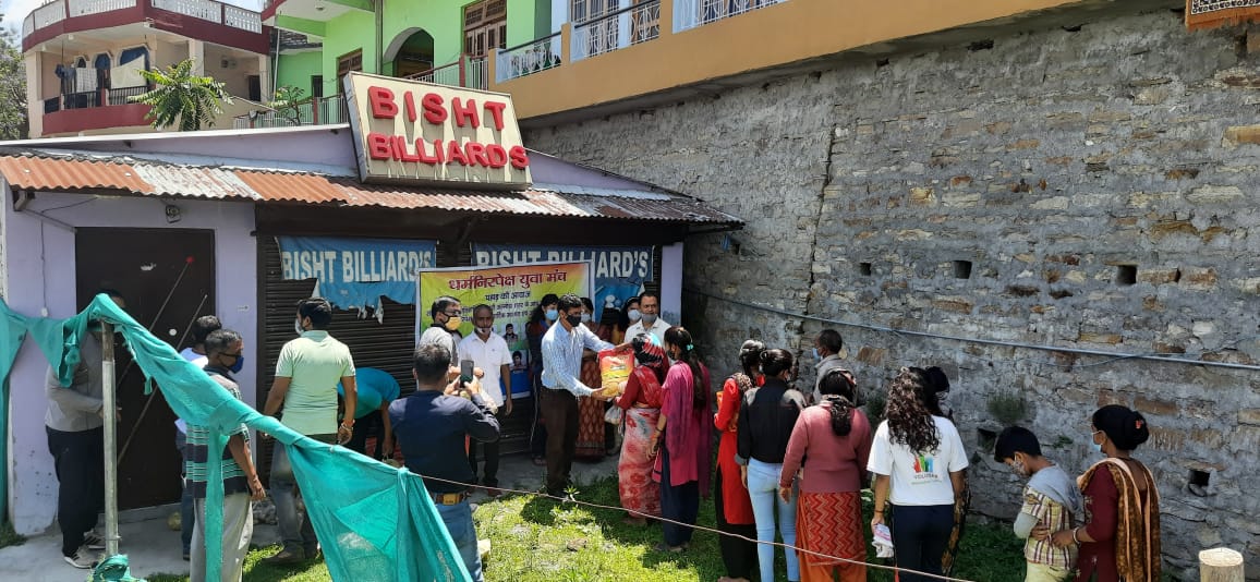 अल्मोड़ा-आज दिनांक 2 जून 2021 को धर्मनिरपेक्ष युवा मंच द्वारा कोरोनाकाल में गरीब निसहाय जनता विशेषकर जिनको राशन कार्ड ना होने से राशन की सुविधा नहीं मिल रही है,इस आपदा में रोजगार छिन गया है ऐसे लोगों की मदद हेतु जरुरतमंद परिवार के द्वार अन्न अभियान के तहत कल राजपुरा के पश्चात् आज ग्राम सभा खत्याड़ी के 150 से अधिक परिवारों को राशन वितरित किया गया।मंच संयोजक विनय किरौला ने बताया कि मंच द्वारा लगातार प्रयास किया जा रहा है कि इस कोरोनाकाल में आर्थिक स्थिति दयनीय विशेषकर रोजगार से वंचित, दिव्यांग व विधवा महिलाओं को राशन वितरित किया जा रहा है तथा स्थिति सामान्य होने तक निरन्तर राशन बाटने का काम जारी रहेगा।इस अवसर पर मंच संयोजक विनय किरौला,मीडिया समन्वयक मयंक पंत,मनीष भाकुनी,हवालबाग ब्लाक के समन्वयक राजन कनवाल, तेज सिंह कनवाल, मुकेश कनौजिया, पवन मुस्यूनी,अमित चौधरी, गुड्डू कनवाल, मुकुल सारकी,देबा कनवाल,कमला किरौला इत्यादि लोग मौजूद रहे।