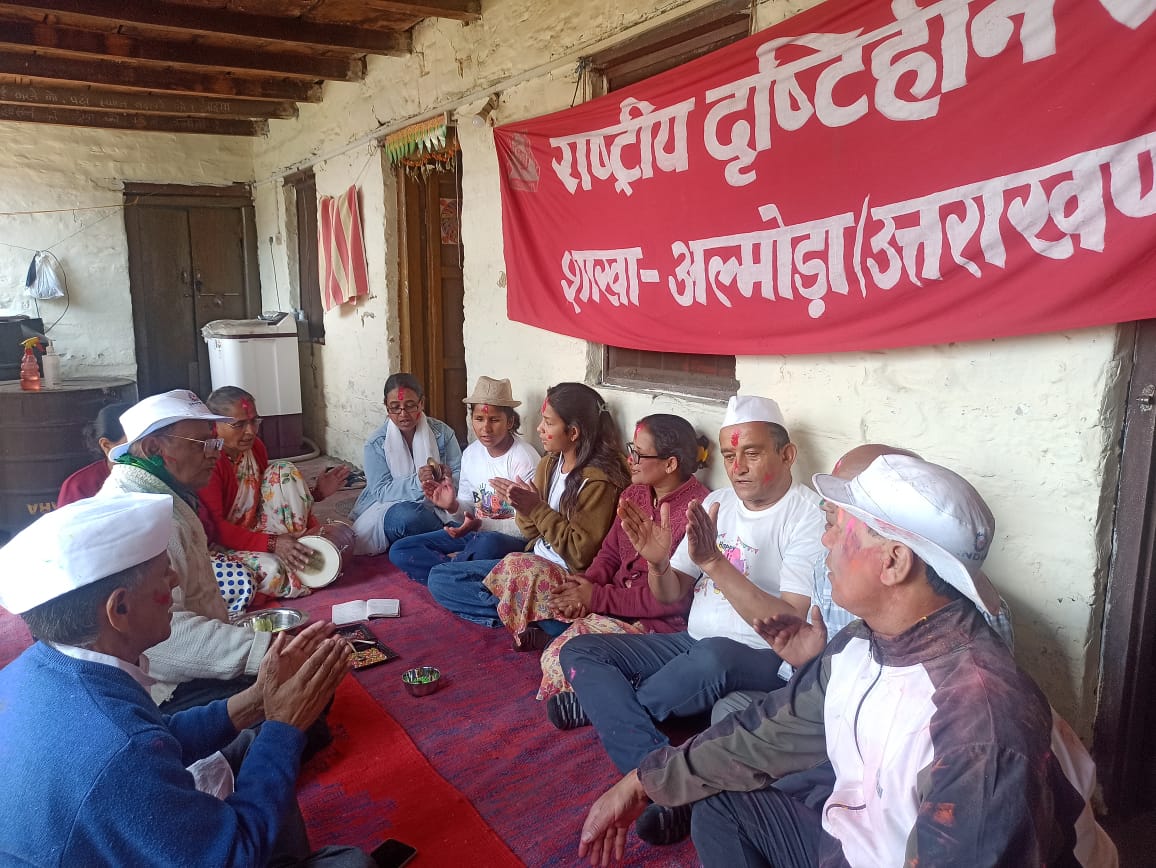 अल्मोड़ा-आज दिनांक 14 मार्च 2025 को राष्ट्रीय दृष्टिहीन संघ अल्मोड़ा इकाई द्वारा संघ कार्यालय तिलकपुर में सभी राष्ट्रीय दृष्टिहीन संघ के सदस्य गणों एवं संघ के पदाधिकारियों और दृष्टि बाधितों के द्वारा होली का आयोजन कर होली का उत्सव मनाया गया जिसमें एक दूसरे को प्रेम स्नेह से आशीष और मंगल कामनाएं करते हुए सौहार्द पूर्ण वातावरण में सुंदर गायन,होली गायन आयोजन किया तथा एक दूसरे को अबीर गुलाल लगाया गया और इस कार्यक्रम के माध्यम से सभी को शुभकामनाएं दी।इस कार्यक्रम को आयोजित करने में स्वाति तिवारी , महेंद्र सिंह अधिकारी महासचिव राष्ट्रीय दृष्टिहीन संघ अल्मोड़ा,जी सी दुर्गापाल,चंद्र मनी भट्ट,कमल कुमार बिष्ट,नेहा आगरी,सिया आगरी,रेखा कस्यप,शांति डालाकोटी,बसंत आर्य,शंकर दत्त भट्ट आदि मुख्य रूप से शामिल रहे।