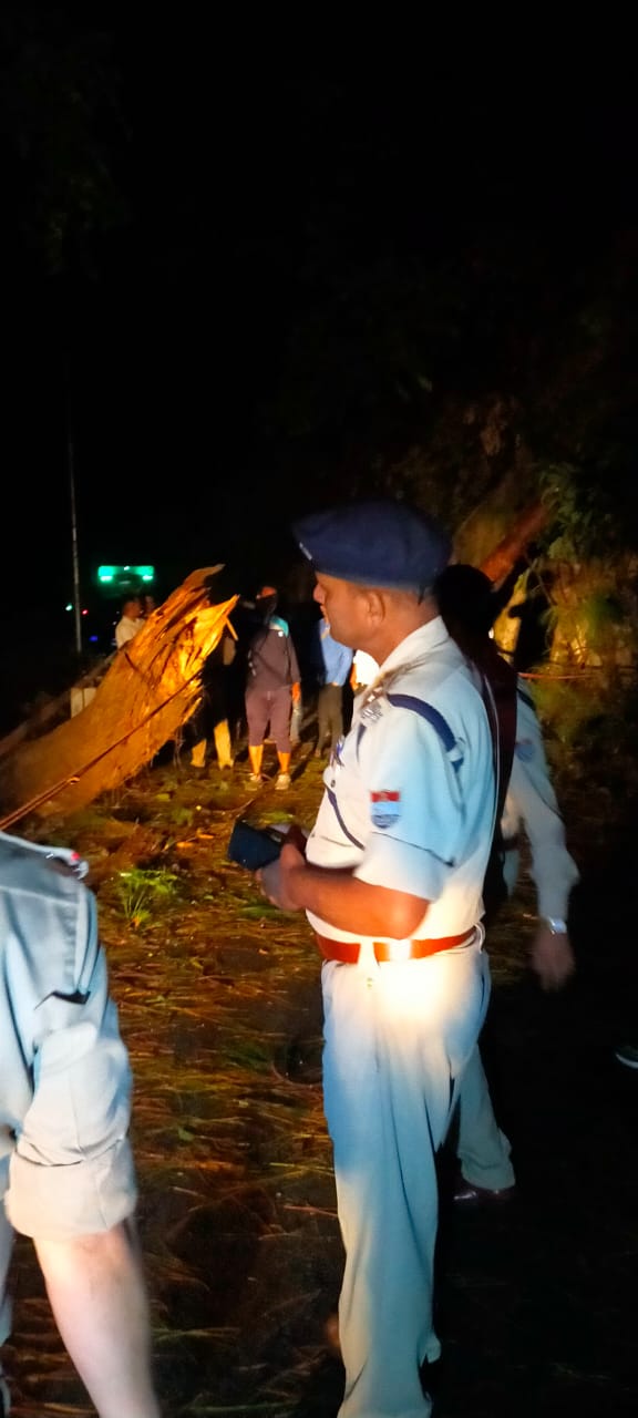 द्वाराहाट-दिनांक 13.05.2022 को डिस्ट्रिक कन्ट्रोल रूम के माध्यम से करीब 4.30 बजे थाना पुलिस को सूचना प्राप्त हुई थी कि द्वाराहाट रानीखेत रोड में कफड़ा मार्केट में सड़क में पेड़ गिरने से मार्ग अवरुद्ध हो गया है इस सूचना पर थाना से राजेन्द्र सिंह बिष्ट थानाध्यक्ष द्वाराहाट मय फोर्स एवं आपदा प्रबन्धन उपकरण के साथ मौके पर पहुँचा तो देखा कि कफड़ा मार्केट में सड़क के बायी ओर इन्दर सिंह किरौला पुत्र भीम सिंह किरौला के एक पूराने मकान जिसके ऊपर टिन की छत पड़ी है मकान के पीछे खड़ीक का एक मोटा पेड़ था क्षेत्र में आज हुई बारिश एवं आधी तुफान से पेड़ का एक हिस्सा टूटकर इन्दर सिंह किरौला के मकान की छत गिर गया था और उसकी टहनियाँ सड़क पर आ गयी थी जिसके कारण रानीखेत द्वाराहाट मार्ग में यातायात बाधित हो गया था मौके पर पुलिस टीम द्वारा पेड़ हटाने का कार्य किया गया और मार्ग में यातायात को पुनः चालू किया गया इस कार्य में स्थानीय लोगों की भी मदद ली गयी थी।इस घटना में किसी भी प्रकार की कोई जनहानि नहीं हुई थी।पुलिस द्वारा की गयी इस त्वरित कार्यवाही की स्थानीय जनता द्वारा सरहाना की गयी।एक अन्य घटना में कॉलर चन्दन सिंह किरौला पुत्र स्व० भीम सिंह किरौला निवासी बले थाना सोमेश्वर अल्मोड़ा ने थाना द्वाराहाट पुलिस को सूचना दी कि बिन्ता सोमेश्वर मार्ग में बिन्ता पुल से करीब 500 मीटर आगे सोमेश्वर की तरफ भारी बारिश एवं आंधी तुफान से चीड़ के दो पेड़ सड़क पर गिरे हुए हैं जिससे दोनों तरफ का यातायात पूर्ण रूप से बाधित हो गया है इस सूचना पर राजेन्द्र सिंह बिष्ट थानाध्यक्ष द्वाराहाट मय फोर्स एवं आपदा प्रबन्धन उपकरणों के साथ बिन्ता सोमेश्वर मार्ग में मौके पर पहुंचे तो देखा कि क्षेत्र में बारिश व आधी तुफान से चीड़ के दो पेड़ पहाड़ से गिरकर सड़क में पड़े हुए थे जिसके कारण यातायात पूर्ण रूप से अवरुद्ध था और दोनों तरफ से आने जाने वाले वाहन खड़े थे थानाध्यक्ष द्वाराहाट व कर्मचारीयों /हाईवे पैट्रिलिंग / सोमेश्वर मार्ग की डायल 112 वाहन के कर्मचारीयों की मदद से आपदा प्रबन्धन उपकरणों का प्रयोग करते हुए पेड़ की टहनियों को काटकर एवं पेड़ को आपदा प्रबन्धन की रस्सीयों से बांध कर एवं मौके पर खड़े ट्रकों से खिचवाकर पेड़ को सड़क के नीचे गिराया गया करीब दो घण्टे की कड़ी मशकत के बाद समय करीब 22 बजे यातायात के लिए सुचारु किया गया।
