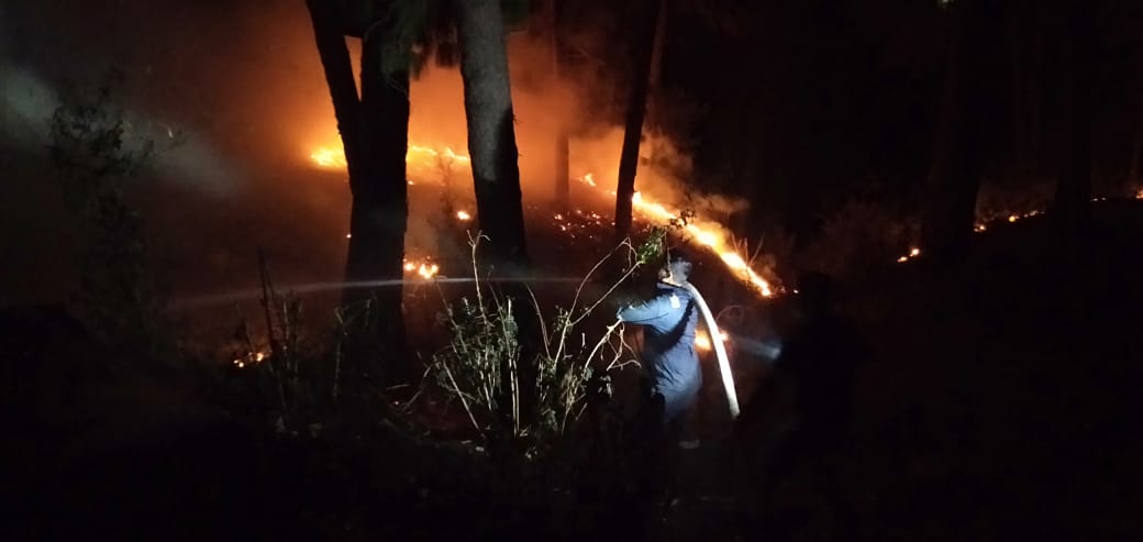 रानीखेत-आज सायं 06:00 बजे सूचना प्राप्त हुई कि सोमनाथ ग्राउंड रानीखेत नियर शिव मंदिर के पास जंगलों में आग लगी है जो रिहायशी इलाकों की तरफ बढ़ रही है सूचना मिलते ही फायर सर्विस यूनिट रानीखेत द्वारा तुरंत पहुंच कर उचित कार्यवाही करते हुए आग को वाहन से पंपिंग कर 2 हॉर्स पाइप फैलाकर आग को पूर्ण रूप से बुझाया गया।जिसमें आर्मी के उच्च अधिकारी फॉरेस्ट के कर्मचारी तथा फायर सर्विस प्रभारी अधिकारी लीडिंग फायरमैन केशव दत्त तिवारी,लीडिंग फायरमैन राजेश सिंह कार्की,चालक राजकुमार फायरमैन,अनुज शर्मा व फायरमैन कासिम अली मौजूद थे।