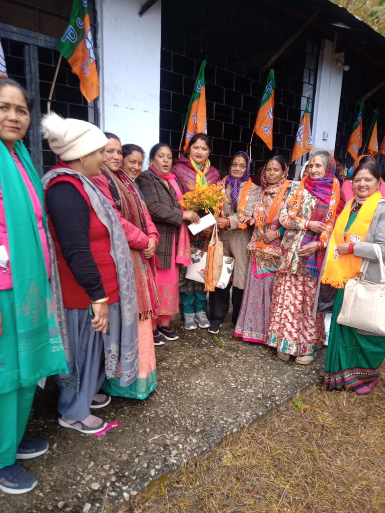 गंगोलीहाट-विगत दिवस विधानसभा गंगोलीहाट के गणाई गंगोली में महिला मोर्चा सम्मेलन का आयोजन किया गया।जिसमें मुख्य वक्ता के रूप में गंगोलीहाट विधायक मीना गंगोला एवं पिथौरागढ़ जिला प्रभारी के रूप में प्रदेश मंत्री श्रीमती किरण पंत ने प्रतिभाग किया।श्रीमती पंत ने वर्ष 2022 में सभी कार्यकर्ताओं से एकजुट होकर भारतीय जनता पार्टी के पक्ष में भारी से भारी मतदान कर प्रदेश में पुनः भाजपा सरकार लाने का आह्वान किया।इस कार्यक्रम में चार दर्जन से अधिक महिलाओं ने भाजपा की सदस्यता ग्रहण की।इस अवसर पर प्रदेश मंत्री किरन पन्त ने केन्द्र एवं राज्य सरकार द्वारा चलाई जा रही जनकल्याणकारी योजनाओं की जानकारी देकर सभी से इन योजनाओं का लाभ लेने की अपील की।किरण पंत ने कहा कि भाजपा सरकार की जनकल्याणकारी नीतियों के कारण जनता लगातार भाजपा से जुड़ रही है।उन्होंने कहा कि निश्चित रूप से जनता आने वाले विधानसभा चुनाव में भाजपा को भारी बहुमत देने जा रही है।सम्मेलन में महिला मोर्चा जिला अध्यक्ष माला सोन,कुमाऊं महिला मोर्चा सम्मेलन प्रभारी उमा वदालिनी, प्रदेश कार्यकारिणी सदस्य हेमा महर,जिला महामंत्री प्रमिला बोरा,मंडल अध्यक्ष अनीता सामंत,ब्लाक प्रमुख गंगोलीहाट अर्चना,ब्लाक प्रमुख बेरीनाग विनीता बाफिला,जिला पंचायत सदस्य नेहा बोरा,पूनम पालीवाल,नीमा परगाई,मंजू डसीला, रेखा डसीला,रेनू चौधरी,हिना पंत, अनीता पांडे सहित अनेक जनप्रतिनिधि महिलाएं उपस्थित रहीं।