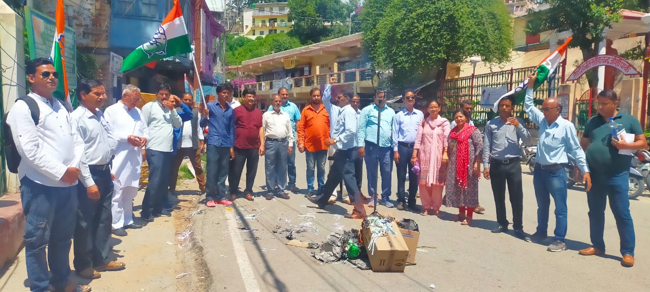 अल्मोड़ा-आज अल्मोड़ा के कांग्रेसजनों ने कांग्रेस जिलाध्यक्ष पीताम्बर पाण्डेय एवं नगर अध्यक्ष पूरन सिंह रौतेला के संयुक्त नेतृत्व में घरेलू गैस सिलेण्डर मूल्यवृद्धि एवं बेतहाशा बढ़ रही महंगाई के विरोध में स्थानीय चौहानपाटा में मोदी सरकार का पुतला दहन किया।इस अवसर पर कांग्रेसजनों ने केन्द्र की मोदी सरकार के खिलाफ जमकर नारेबाजी भी की।इस अवसर पर जिलाध्यक्ष पीताम्बर पाण्डेय ने कहा कि भाजपा की इस सरकार में देश एवं प्रदेश की मध्यमवर्गीय एवं गरीब जनता पर लगातार महंगाई की मार पड़ रही है।उन्होंने कहा कि भाजपा सरकार ने महंगाई का कीर्तिमान स्थापित करते हुए काफी समय पहले ही घरेलू गैस सिलेन्डर का मूल्य एक हजार रूपये के पार पहुंचा दिया था।विगत दिवस पुनः भाजपा की इस जनविरोधी सरकार में घरेलू रसोई गैस सिलेन्डर का मूल्य पचास रूपये बढ़ाकर जनता पर अतिरिक्त आर्थिक बोझ डालने का काम किया गया है।उन्होंने कहा कि भाजपा की सरकार में बैठे नुमाइंदों को मध्यमवर्गीय एवं गरीब जनता के दुःख/तकलीफों से कुछ भी लेना देना नहीं है।जनता भाजपा की सरकार के लिए मात्र वोट बैंक है।चुनाव आते ही भाजपा एवं इसके नुमाइंदे जनता को मुंगेरीलाल के सपने दिखाते हैं और सत्ता में आसीन होने के बाद ये ही भाजपा सरकार जनता को महंगाई के बोझ तले इतना दबा देती है कि जनता को इनके द्वारा दिखाए गये वे स्वप्न चकनाचूर हो जाते हैं।कांग्रेस नगर अध्यक्ष पूरन सिंह रौतेला ने कहा कि आज पेट्रोल, डीजल,रसोई गैस,अनाज से लेकर दैनिक उपभोग की वस्तुएं दाल,आटा,तेल,सब्जियां इतनी महंगी हो चुकी हैं कि मध्यमवर्गीय और गरीब परिवारों के लिए अपने बच्चों का पालन पोषण तक करना मुश्किल हो रहा है।उन्होंने कहा कि भाजपा सरकार स्वयं अपनी पीठ थपथपाने में मस्त है और वर्तमान महंगाई से मुंह मोड़े हुए है।बजाय इसके की कोई ठोस नीति बनाकर महंगाई को कम किया जाए ये सरकार दिन प्रतिदिन महंगाई को आकाश पर पहुंचा रही है।उन्होंने कहा कि भाजपा सरकार निरंकुशता की सारी हदें पार कर रही है।लेकिन भाजपा सरकार ये कतई ना सोचे कि वो अपनी मनमानी करती रहेगी और कोई कुछ नहीं कहेगा।उन्होंने कहा कि जनहित में कांग्रेस पार्टी भाजपा सरकार के मनमाने फैसलों,बढ़ती महंगाई और बेरोजगारी के खिलाफ लगातार आवाज बुलन्द करने का काम करेगी।उन्होंने कहा कि यदि भाजपा सरकार ने अविलम्ब घरेलू रसोई गैस सिलेन्डर सहित अन्य आवश्यक वस्तुओं के बढ़े मूल्य वापस नहीं लिए तो कांग्रेस पार्टी इसका पुरजोर विरोध करेगी।पुतला दहन कार्यक्रम में कांग्रेस जिलाध्यक्ष पीताम्बर पाण्डेय,अल्मोड़ा विधायक मनोज तिवारी,पूर्व विधानसभा अध्यक्ष गोविन्द सिंह कुंजवाल,नगर अध्यक्ष पूरन सिंह रौतेला,महिला जिलाध्यक्ष लता तिवार