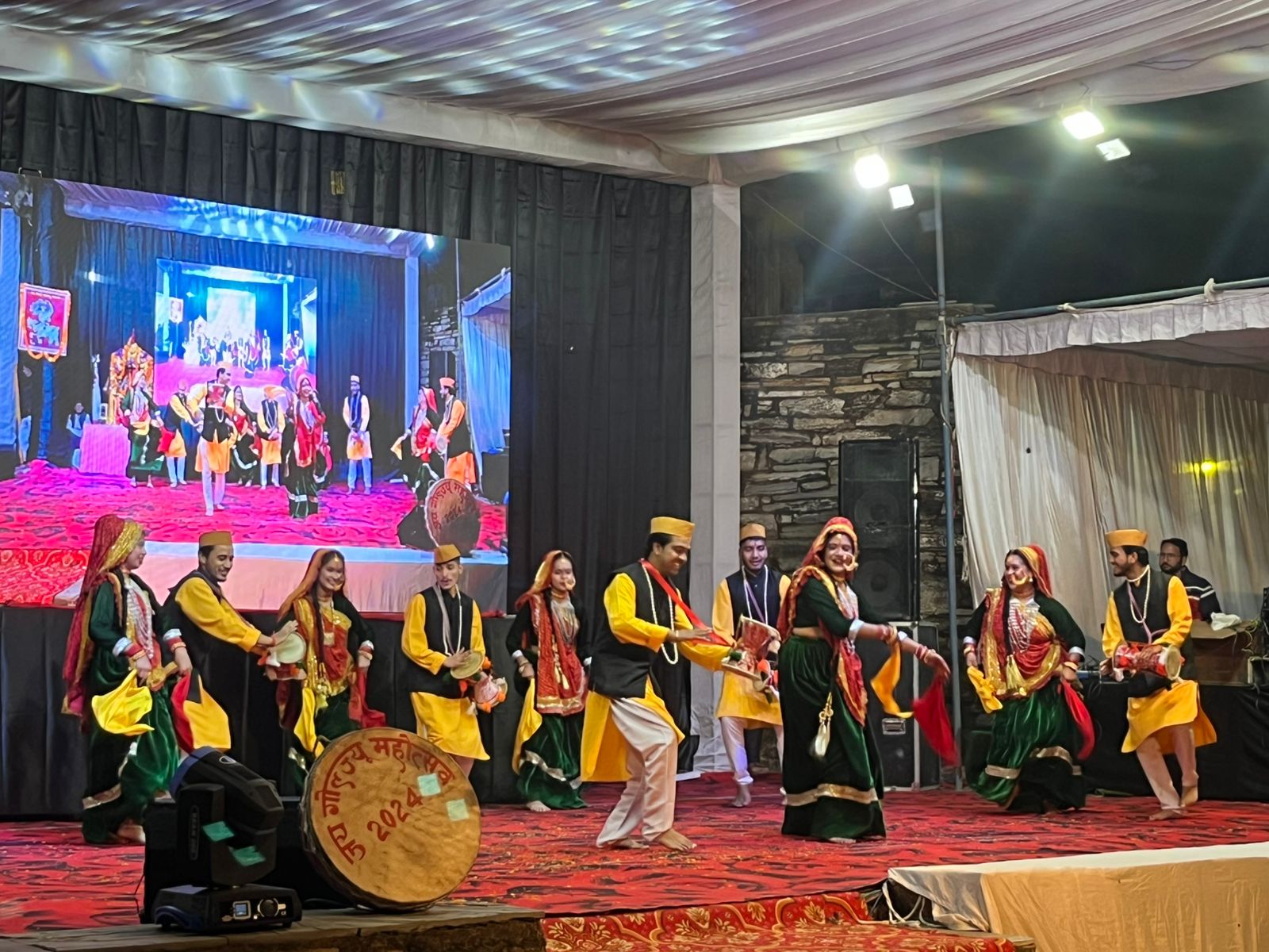 अल्मोड़ा-जय गोलज्यू महोत्सव 2024 के प्रथम दिवस के स्टार नाइट के कार्यक्रम का शुभारंभ मुख्य अतिथि विधायक अल्मोड़ा मनोज तिवारी, विशिष्ट अतिथि मुकुल पेटशाली, डीप सिंह डांगी, विनीत बिष्ट, रवि रौतेला, तुषार कांत साह, जगदीश वर्मा, सुनीता वर्मा, गीता चौहान, दीपक वर्मा आदि के द्वारा दीप प्रज्वलन कर किया गया। कार्यक्रम में नटराज डांस ग्रुप द्वारा वंदना, नव हिमालय लोक कला केंद्र (गुजरात, महाराष्ट्र, हरियाणा, राजस्थान) द्वारा अपनी प्रस्तुति दी गई। राजस्थान से आए भंवई लोक नृत्य के सुप्रसिद्ध कलाकार सुरेश व्यास द्वारा भवाई लोक नृत्य की सुंदर प्रस्तुति दी। कार्यक्रम में गुजरात से आए कलाकारों ने डांडिया की सुंदर प्रस्तुति दी और हरियाणा से आये कलाकारों ने शिव स्तुति की सुंदर प्रस्तुति दी। वहीं लोक गायक सुरेश प्रसाद सुरीला ने अपने गीतों से समाँ बाँध दिया। सुरेश प्रसाद सुरीला द्वारा ‘ओ सरिता बैठी जा वड्डा गाड़ी में’, ‘हफ़्त में ऐतवार का दिन डेली फ़ोन करिए म्यार सुवा’ जैसे अन्य गीतों से दर्शकों का दिल जीत लिया।