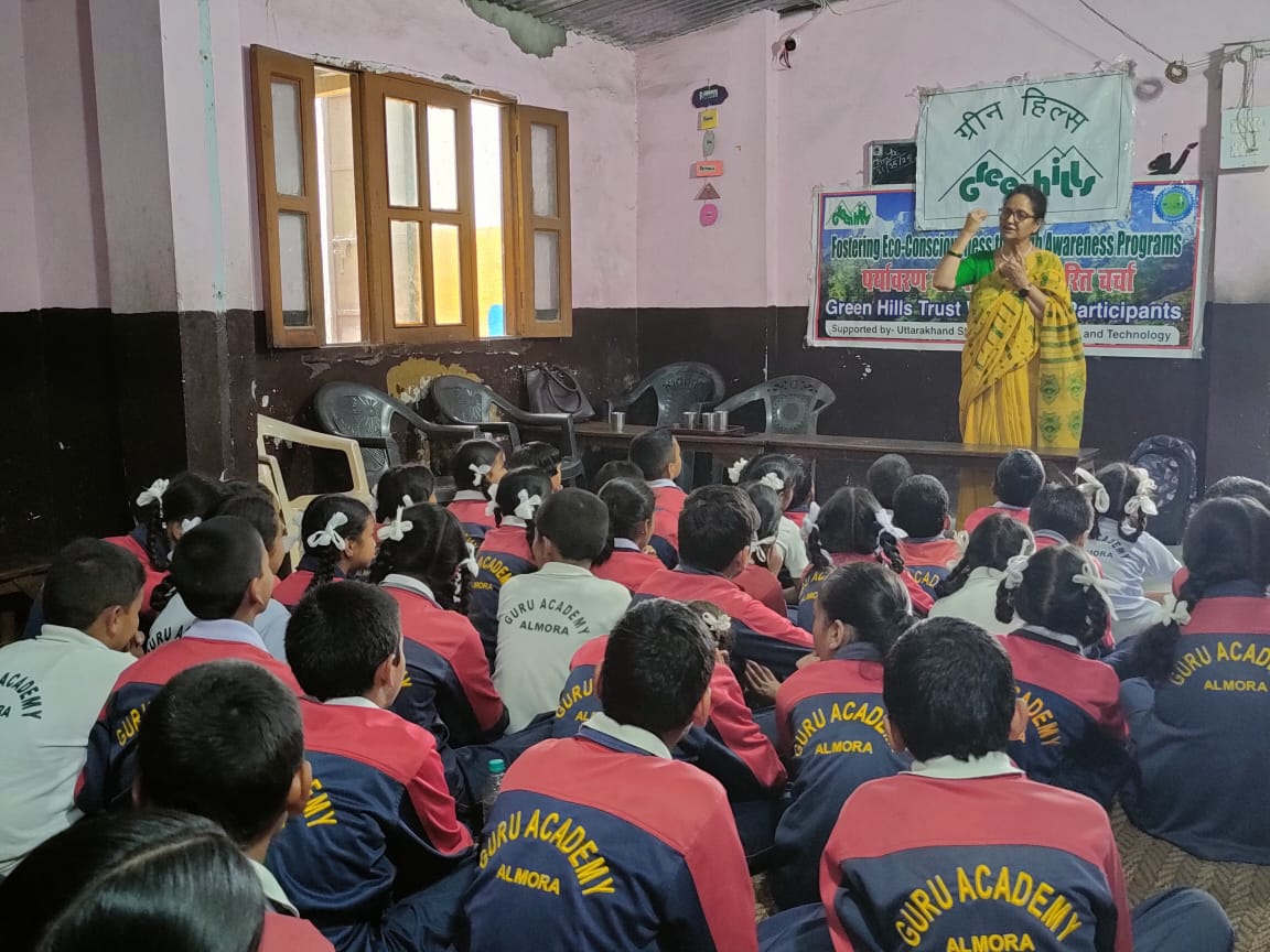 अल्मोड़ा-ग्रीन हिल्स ट्रस्ट द्वारा जागरूकता कार्यक्रमों के माध्यम से पर्यावरण चेतना को बढाने के लिए आज की पर्यावरण की पाठशाला कार्यक्रम का आयोजन पीएमश्री राजकीय बालिका इंटर कॉलेज अल्मोड़ा में किया गया।इससे पूर्व इस पाठशाला का आयोजन राजकीय इंटर कॉलेज हवलबाग,राजकीय इंटर कॉलेज स्यालीधर,ग्रीन फील्ड पब्लिक स्कूल,स्प्रिंग डेल्स पब्लिक स्कूल, शारदा पब्लिक स्कूल,गुरु अकेडमी, इंस्पिरेशन पब्लिक स्कूल,बीरशिबा इंटर कॉलेज में किया गया है।संस्था की सचिव डा वसुधा पन्त ने विद्यार्थियों को ग्लोबल वार्मिंग, जलवायु परिवर्तन के बारे में विस्तृत रूप से बताते हुए कहा इसके लिए मनुष्य का लालच ही जिम्मेदार है।यदि इससे हमें निबटना है तो हर व्यक्ति को और मुख्यतया हर विद्यार्थी को अपनी पर्यावरणीय चेतना को जागृत करना होगा और अपने हर कार्य /आदत की स्वयं समीक्षा करनी होगी ताकि वह अपने कार्बन फुट प्रिंट को कम कर सके।अपने उपभोग पर नियंत्रण करके ही हम जलवायु परिवर्तन की विभीषिका से बच सकते हैं।जलवायु परिवर्तन का सबसे बुरा प्रभाव भारत जैसे देशों पर ही पड़ेगा और सबसे ज्यादा प्रभावित हमारे जल स्रोत होंगे। प्रो जे एस रावत द्वारा कोसी नदी पर करी गई विस्तृत रिसर्च के मध्यम से सूखती कोसी एवं उसकी सहायक नदियों का उदाहरण देते हुए उन्होंने समझाया कि हमारे पहाड़ों पर तो इस जलवायु परिवर्तन का असर अभी से पड़ने लगा है जिसके कारण सदानीरा रहने वाली असंख्य नदियों का अस्तित्व संकट में आ चुका है।यह मरूस्थलीकरण के खतरे का आभास कराता है।इस संकट से निबटने के लिए ऊन्होने आह्वान किया कि हम अपने छोटे छोटे प्रयास करें और पर्यावरण संरक्षण में योगदान दे।इस पाठशाला में विद्यार्थियों का सक्रीय प्रतिभाग बहुत सराहनीय रहा।