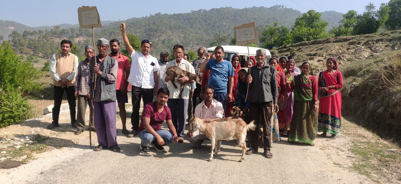 गुलदार के आतंक से दहशत के साये में जी रहे दौलाघट के सिलानी,केस्ता और रिखे गांव के ग्रामीण आज सड़क पर उतर आये।यहां महिलाओं, पशुपालकों और ग्रामीणों ने अपने पालतू पशुओं के साथ दौलाघट रिखे पायखाम मोटर मार्ग पर जाम लगाया। पूर्व यूसीडीएफ प्रतिनिधि ललित मोहन तिवारी और पूर्व क्षेत्र पंचायत सदस्य व डायरेक्टर दुग्ध संघ अल्मोड़ा महेन्द्र सिंह बिष्ट के नेतृत्व में आक्रोशित ग्रामीणों ने पालतू पशुओं और तख्ती बैनर को हाथ में पकड़ कर वन विभाग के खिलाफ जमकर नारेबाजी की। ग्रामीणों ने गुलदार को जल्द पकड़ने अथवा मारने की मांग की।जबकि कार्यवाही नहीं होने पर आन्दोलन की चेतावनी दी है।पूर्व यूसीडीएफ प्रतिनिधि ललित मोहन तिवारी ने कहा कि सिलानी,केस्ता और रिखे सहित दौलाघट के दर्जनों गांवों में में गुलदार घर के आंगन से पालतू पशुओं को अपना निशाना बना रहा है।जबकि ग्रामीणों और पशुपालकों को भी जान का खतरा बना हुआ है।वहीं पूर्व क्षेत्र पंचायत सदस्य व डायरेक्टर दुग्ध संघ अल्मोड़ा महेन्द्र सिंह बिष्ट का कहना है कि बीते एक माह में सिलानी,केस्ता और रिखे गांवों में गुलदार में 3 गाय और 12 बकरियों को निवाला बना दिया है।पूर्व में वन विभाग ने पिंजरा तो लगाया।वन विभाग गुलदार तो नहीं पकड़ पाया नाकाम विभाग ने कुछ दिनों बाद पिंजरा हटा दिया।वन विभाग को चेताते हुए स्थानीय दुग्ध उत्पादकों और ग्रामीणों ने दौलाघट क्षेत्र के दो दर्जन गांवों के ग्रामीणों के साथ एकजुट होकर डीएफओ घेराव, चक्का जाम सहित उग्र आन्दोलन की चेतावनी दी है।प्रदर्शनकारियों में उपाध्यक्ष दुग्ध संघ अल्मोड़ा नीमा देवी,ग्राम प्रधान ममता बिष्ट,चम्पा देवी,हेमा,रमा देवी,दीपा देवी,ममता, मंजू,अनीता,रमा,हेमा,ज्योति,खगोति देवी,जानकी,हीरा देवी,कृपाल सिंह बिष्ट,बचे सिंह,गोविन्द सिंह,पान सिंह, भगवान सिंह,बालम सिंह,षिवराम, मोहन राम,ग्रीष बिष्ट,हर सिंह,शंकर सिंह,गोविन्द बिष्ट सहित ग्रामीण लोग मौजूद रहे।