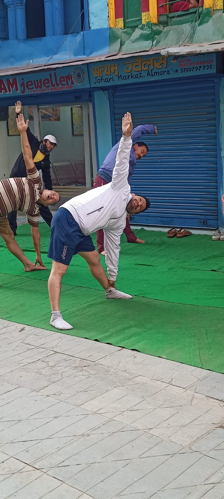 अल्मोड़ा-आज हिन्दू सेवा समिति और योगनिलियम ग्रुप द्वारा आयोजित योग शिविर में सभी आम नागरिकों और बच्चो ने प्रतिभाग किया।यह शिविर जौहरी बाजार में आयोजित किया गया और आने वाले समय में पूरे नगर के वार्डों में आयोजित किया जाएगा।बच्चों को नशे से दूर रखने के लिए यह पहल जरूरी है।योग शिविर प्रातः 6 बजे से आयोजित किया गया।जिसमें छोटे छोटे बच्चो ने योग करके सबका दिल जीत लिया।योग शिविर में व्यापार मंडल अध्यक्ष सुशील साह,हिन्दू सेवा समिति के कोषाध्यक्ष नीरज बोरा, मीडिया प्रभारी युवम वोहरा,समिति के उपाध्यक्ष किशन लाल,मनोज वर्मा, कृष्ण बहादुर,पवन साह,अवि वर्मा, दीपक वर्मा,गोविन्द मटेला,अमित वर्मा,मनीष साह,कैलाश वर्मा,संजय वर्मा टेनी,मोहन बिष्ट,योगी,हर्ष वर्मा, विजय चौहान,योगनीलियंम निदेशक डॉ प्रेम प्रकाश पाण्डे,प्रशिक्षक हिमांशु परगाई,कृष्णा बिष्ट,योग साधक दिवस,दिशा,राजश्री,प्रार्थना, धीरज,एवम अन्य साधक उपस्थित रहे।