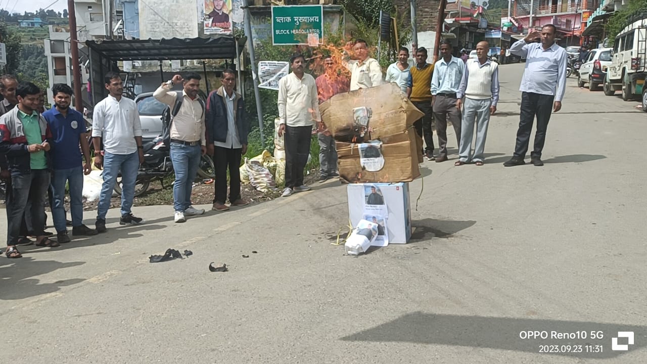 जागेश्वर-आज जागेश्वर विधानसभा के विकासखंड लमगड़ा के कांग्रेस कार्यकर्ताओं ने जागेश्वर विधानसभा के अनुसूचित जाति बाहुल्य क्षेत्र में विधायक द्वारा विकास कार्यों को रोकने का आरोप लगाते हुए आक्रोशित होकर लमगड़ा चौराहे में विधायक मोहन सिंह मेहरा का पुतला फूंका।पुतला फूककर भविष्य में नियम कानून को मद्दे नजर रखकर भविष्य में सही काम करने की सलाह दी।साथ ही न्यायालय के आदेश के लिए संबंधित न्यायाधीशों को धन्यवाद दिया।सभी कार्यकर्ताओं ने कहा कि भाजपा सरकार लगातार संविधान व कानून की धज्जियां उड़ाकर काम करने का प्रयास कर रही है।इस देश में संविधान का सम्मान करते हुए न्यायालय ने बेहद सही बात कही है। उन्होंने न्यायलय से भविष्य में भी इसी प्रकार निर्णय करते हुए आम जनमानस के हितों की रक्षा करने का निवेदन भी किया।कार्यक्रम में ब्लाक अध्यक्ष जिला महामंत्री दीवान सतवाल,मल्ला सलाम प्रभारी रमेश बिष्ट,न्याय पंचायत अध्यक्ष राजेंद्र बिलवाल,प्रधान धूरासंग्रौली दयाल पांडे,पूर्व कनिष्ठ प्रमुख लमगड़ा मोहन ढैला,दीपक मलाड़ा,पूर्व क्षेत्र पंचायत सदस्य मलाड़ी गोपाल बनौली,पूर्व क्षेत्र पंचायत सदस्य विशन राम,पूर्व प्रधान मलाड़ी चंदन राम मलाड़ी,नवीन कुमार धूरासंग्रौली,हिमांशु नगर कोटी पूर्व अध्यक्ष महाविद्यालय लमगड़ा,विनोद कुमार पहौड़ा,पान सिंह गैलाकोटी, चंदन सिंह गैलाकोटी,सुनील कुमार, मुकेश पांडे,लक्ष्मण आर्य,पूर्व क्षेत्र पंचायत सदस्य जीवन राम,राजेंद्र प्रसाद,छात्र संघ कोषाध्यक्ष रूपा देवी, सागर नगरकोटी,पंकज नगरकोटी, हेमा देवी,चंदन बिष्ट, तुलसी देवी, पुष्कर बिष्ट आदि शामिल रहे।