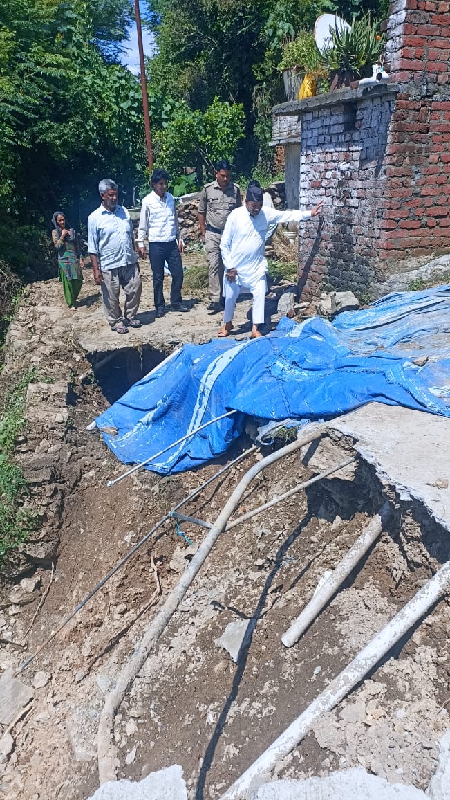 जागेश्वर-विगत तीन दिन पहले क्षेत्र में हुई भयंकर बारिश से क्षेत्र के दर्जनों गांवों में लोगो के मकान ढहने,रास्तो के टूटने और मकानों के आंगन दीवालो के गिरने की तमाम सूचनाएं आपदा प्रबंधन को दी गयी।जागेश्वर विधानसभा के विधायक मोहन सिंह मेहरा ने रविवार व सोमवार को धौलादेवी ब्लाक के ग्राम पंचायत चगेठी, दसौला बडियार, गुणादित, पाली, जिगोलितोली सहित दर्जनों गांवों में जायजा लिया और आपदा से प्रभावित क्षेत्र के लोगो को सांत्वना दी।आपदा से प्रभावित लोगो को मकान रास्ते,आँगन आदि टूटने की जानकारी संबंधित विभागों को दी व उचित मुवावजा दिलवाने का आश्वासन दिया।रविवार को लमगड़ा ब्लाक के ग्राम पंचायत टिकर के तोक देवली निवासी हरिप्रिया देवी का दो मंजिला मकान जमीदोज हो गया। बूढ़ी महिला को पड़ोसियों ने बचा लिया।लेकिन गोठ में बधे दो बैल और गाय को निकलने में असमर्थ रहे। जिनकी दब कर मौत हो गयी। विधायक मेहरा ने घटना स्थल का जायजा लेकर पीड़ित महिला की मदद कर उनके खाने और रहने की व्यवस्था पडोस में करवाई।मकान के मलवे में दबे जानवरों को निकालने के लिए विभाग से संपर्क कर जेसीबी मशीन बुलाई गई।जानवरों को निकालने का रेसक्यू अभियान चलाया गया।इसके बाद ग्राम पंचायत चुपड़ा, पीतना सहित खौडी ग्राम पंचायत आपदा प्रभावित क्षेत्र का जायजा लिया।ग्राम पंचायत चगेठी के ग्राम प्रधान पति सुरेंद्र सिंह चौहान ने बताया तीन दिन पहले हुई अतिवृष्टि से ग्राम पंचायत के कई रास्ते मकान की सुरक्षा दीवाल सहित पानी की लाइने ध्वस्त हो गयी जिसकी जानकारी प्रशासन व क्षेत्रीय विधायक को दी गयी।क्षेत्रीय विधायक मोहन सिंह मेहरा ने आपदा ग्रस्त जगहों का स्थलीय जायजा लिया और सम्बन्धित अधिकारियों को निर्देशित किया।