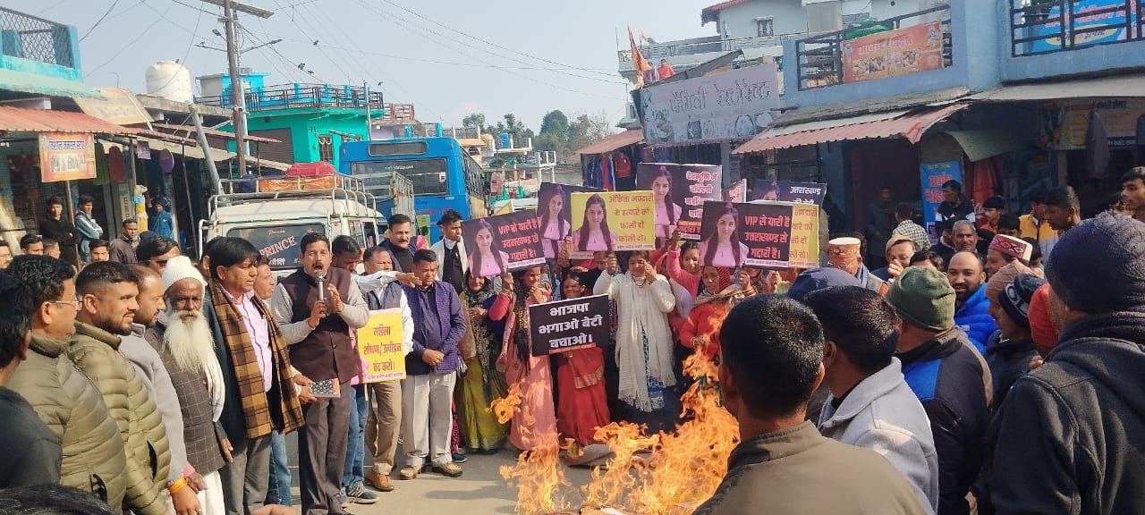 सभी दोषियों को कठोरतम सजा दिलाई जाए।पीड़िता के परिजनों को शीघ्र न्याय मिले व सरकार इस मामले में अपनी भूमिका को सार्वजनिक करे।कांग्रेस जिलाध्यक्ष भूपेंद्र सिंह भोज ने कहा कि कांग्रेस पार्टी अंकिता को न्याय दिलाने तक चैन से नहीं बैठेगी और सड़कों से लेकर सदन तक इस लड़ाई को मजबूती से लड़ेगी। इस दौरान प्रदर्शन एवं आक्रोश रैली में पूर्व विधानसभा अध्यक्ष गोविंद सिंह कुंजवाल,कांग्रेस जिलाध्यक्ष भूपेंद्र सिंह भोज,जागेश्वर प्रभारी दीप सिंह डांगी,पूर्व जिलाध्यक्ष पीतांबर पांडे,कांग्रेस जिला महामंत्री दीवान सतवाल,कार्तिक शाह,गोपाल चौहान,पवन मेहरा