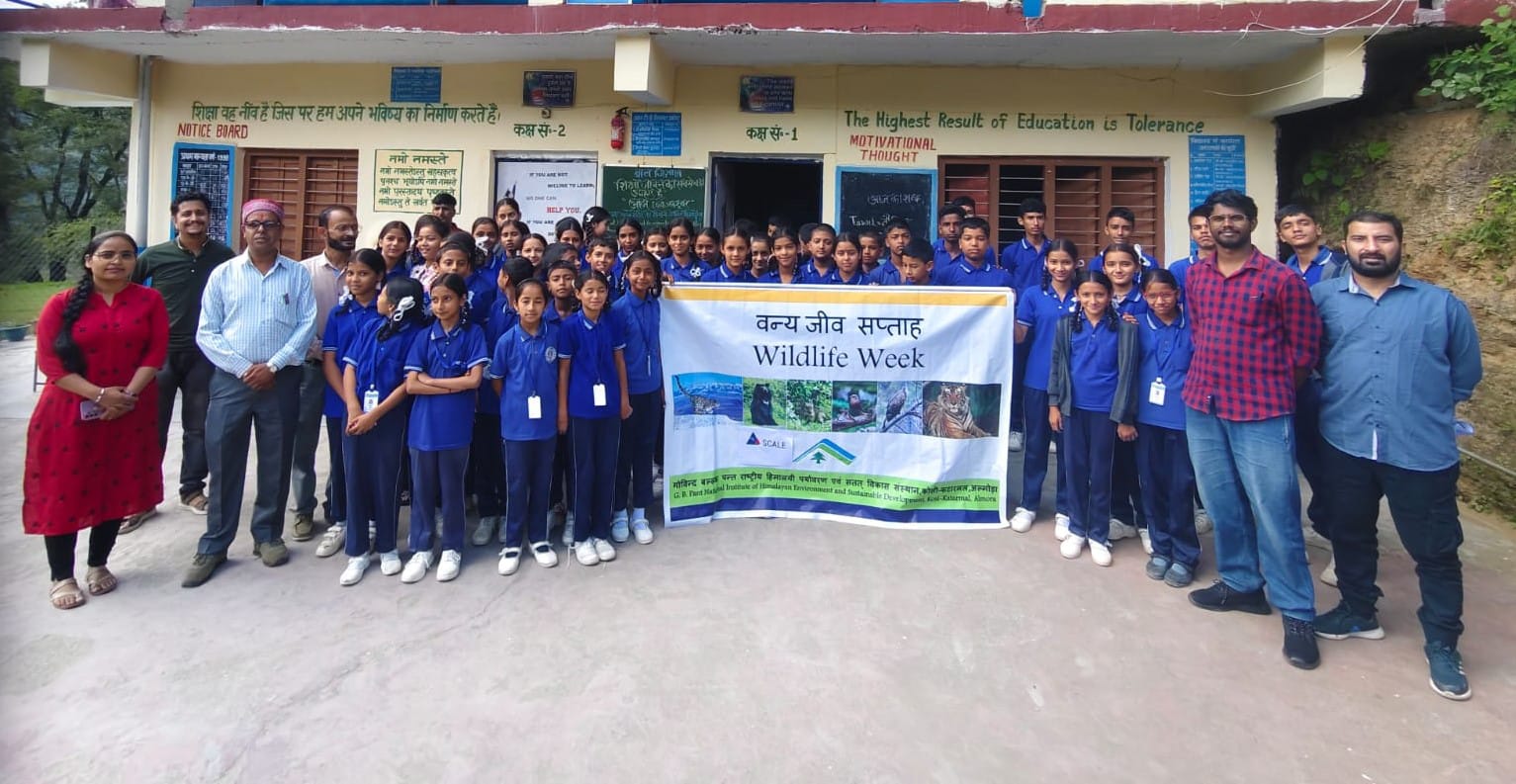 अल्मोड़ा-गोविन्द बल्लभ पंत राष्ट्रीय हिमालयी पर्यावरण संस्थान कोसी कटारमल एवं स्केल संस्था द्वारा विभिन्न विद्यालयों में 71वें राष्ट्रीय वन्य जीव सप्ताह (2 अक्टूबर से 8 अक्टूबर ) के अवसर पर छात्रों में वन्यजीवों के सरंक्षण एवं पर्यावरण संतुलन के प्रति जागरूकता कार्यक्रम एवं विभिन्न प्रतियोगिता (चित्रकला, प्रश्नोत्तरी एवं निबन्ध लेखन) का आयोजन किया जा रहा है। इसी क्रम में आज दिनांक 4 अक्टूबर 2025 को संस्थान एवं स्केल संस्था द्वारा ज्ञान विज्ञान चिल्ड्रन अकादमी हवालबाग में जागरूकता कार्यक्रम को सफलतापूर्वक संचालित किया गया।कार्यक्रम की शुरूआत करते हुए विद्यालय के अध्यापक गोविन्द कुमार द्वारा पर्यावरण संस्थान के शोधार्थियों एवं स्केल संस्था के प्रतिनिधि दिनेश मेहता का स्वागत किया एवं विद्यालय की उपलब्धियों को संक्षेप में बताया। कार्यक्रम को आगे बढ़ाते स्केल संस्था के प्रतिनिधि दिनेश मेहता द्वारा बताया कि अरूण सिन्हा महानिदेशक स्केल संस्था के मागदर्शन में विगत 20 वर्षों से विभिन्न विद्यालयों एवं ग्रामपंचायतों में शिक्षा, सोलर एवं पर्यावरण के क्षेत्र में जागरूकता कार्यक्रमों का आयोजन करता आ रहा है। उन्होने बताया कि इसी क्रम में आज संस्था को गोविन्द बल्लभ पंत राष्ट्रीय हिमालयी पर्यावरण संस्थान के साथ मिलकर यह कार्यक्रम करने का अवसर प्राप्त हुआ है। कार्यक्रम को आगे बढ़ाते हुए पर्यावरण संस्थान के शोधार्थी डा सुनीता बिष्ट ने बताया कि संस्थान के निदेशक प्रभारी डा. आई.डी भट्ट के दिशानिर्देश पर 71वे वन्य जीव सप्ताह का आयोजन 2 से 8 अक्टूबर तक विभिन्न विद्यालयों में किया जा रहा है।इसी क्रम में डा. सुनीता द्वारा इस वर्ष की थीम मानव वन्य जीव सह-अस्तित्व विषय पर एक व्याख्यान दिया गया। इस व्याख्यान में उनके द्वारा मानव वन्य जीव सह-अस्तित्व: जैव-विविधता अनुकूल योजना, सामुदायिक आधार पर संरक्षण, पारंपरिक भारतीय मूल्यों और सह-अस्तित्व का उत्सव मानाने वाले कहानियों पर प्रकाश डाला। इस व्याख्यान के उपरान्त छात्र-छात्राओं के मध्य विभिन्न प्रतियोगिता (चित्रकला, प्रश्नोत्तरी एवं निबन्ध लेखन) करायी गयी।प्रतियोगिता के उपरान्त प्रतिभागियों से कार्यक्रम से प्राप्त जागरूकता से सीख पर जानकारी ली गयी। इसके उपरान्त विद्यालय के प्रधानाचार्य श्री अशोक पंत जी द्वारा डा. आई.डी. भट्ट, निदेशक प्रभारी, गोविन्द बल्लभ पंत राष्ट्रीय हिमालयी पर्यावरण संस्थान कोसी कटारमल एवं शोधार्थियों और स्केल संस्था अरूण सिन्हा, महानिदेशक एवं दिनेश मेहता को धन्यवाद दिया कि इस जागरूकता कार्यक्रम हेतु उन्होने हमारे विद्यालय का चयन किया एवं भविष्य में भी इसी प्रकार के जागरूकता कार्यक्रमों का आयोज