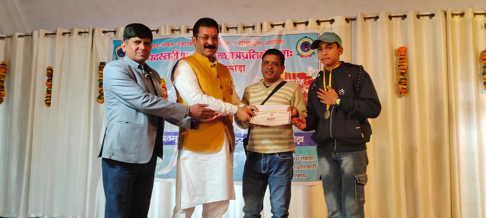 अल्मोड़ा-उत्तराखंड संस्कृत अकादमी हरिद्वार के तत्वावधान में आयोजित संस्कृत छात्र प्रतियोगिता का गुरुवार को समापन हो गया। समापन समारोह में मुख्य अतिथि पूर्व विधायक कैलाश शर्मा ने कहा कि संस्कृत भारतवर्ष की संस्कृति और सभ्यता का आधार है। वैदिक काल से ही संस्कृत समूचे विश्व का ज्ञान अपने में समाहित किए हुए है। उन्होंने कहा कि इस प्रकार की प्रतियोगिताओं से विद्यार्थी अपनी प्रतिभा दिखाने के साथ ही अपनी संस्कृति से भी जुड़ते हैं। इसलिए भविष्य में इस प्रकार की प्रतियोगिताओं को और भी भव्य रूप दिया जाएगा। प्रतियोगिता के कनिष्ठ वर्ग में संस्कृत नाटक में अटल उत्कृष्ट राजकीय इंटर कालेज बाड़ेछीना, समूह गान में श्रीराम संस्कृत विद्यापीठ रानीखेत, समूह नृत्य में राबाइका अल्मोड़ा प्रथम स्थान पर रहे। वहीं प्रतियोगिता के वरिष्ठ वर्ग में संस्कृत नाटक में विवेकानंद विद्या मंदिर द्वाराहाट, समूह गान में अटल उत्कृष्ट राबाइका चौखुटिया, आशुभाषण में संस्कार भारती संस्कृत विद्यालय झीपा के सोनू शर्मा प्रथम स्थान पर रहे। विजेताओं को मुख्य अतिथि द्वारा पुरस्कृत किया गया। सभी प्रथम स्थान प्राप्त विजेता राज्यस्तरीय प्रतियोगिता में प्रतिभाग करेंगे। संचालन जनपद संयोजक हेम चन्द्र जोशी एवं तारा दत्त भट्ट ने किया। इस मौके पर सहायक निदेशक संस्कृत शिक्षा प्रेम प्रकाश, प्रधानाचार्या एस तिमोथी, सह संयोजिका दीपा गुप्ता, भुवन चंद्र जोशी, डॉ संकर्षण त्रिपाठी, डॉ बाला दत्त शर्मा, तारा दत्त भट्ट, सुशील तिवारी, प्रकाश उप्रेती, डॉ कैलाश नयाल, ललित मोहन तिवारी, राजू महरा, मनीषा भट्ट, विवेक स्वरूप, जनार्जन तिवारी, मनीष जोशी, नितेश काण्डपाल, संतोष काण्डपाल, चन्द्रकला भट्ट, आदि मौजूद रहे।