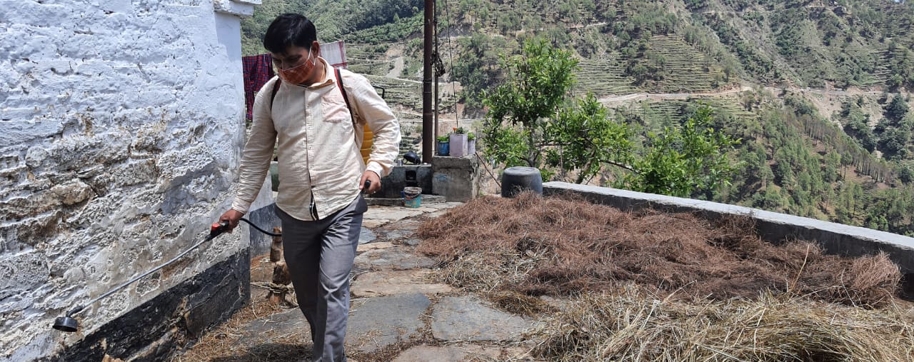 अल्मोड़ा-भारतीय जनता पार्टी जिला महामंत्री एवं सकनियाकोट से जिला पंचायत सदस्य महेश नयाल द्वारा लगातार अपने क्षेत्र में सेनेटाईजेशन एवं मास्क वितरण का कार्य किया जा रहा हैं।उनके द्वारा महतगाव से लेकर मनाएं तक एवं भगतोला,ग्वालाकोट, ज्युला,दाड़िमखोला,सकार सहित अनेकों गावों में सेनेटाइज कराने का कार्य किया गया।उनके द्वारा बताया गया कि सभी गावों को लगातार सेनेटाइज करने का कार्य चल रहा है। सभी गाँवो को सेनेटाइज किया जाएगा।बताया गया कि क्षेत्र में वायरल चल रहा है जिसके तहत लोगों को प्राथमिक स्वास्थ्य केंद्र प्राथमिक उपचार हेतु जाने हेतु मोटिवेट किया जा रहा है और लोगों को बताया गया है कि सभी लोग तुरंत चिकित्सकों के सलाह लेकर उपचार शुरू करें।इसके तहत ग्वालाकोट में कैंप लगाकर लगातार दो दिन क्षेत्र के लोगों की कोरोना टेस्टिंग भी कराई गई है।जिसमे कुछ लोग पोजेटिव आ गए थे,इसलिए आज उन गाँवो को भी सेनेटाइज कराया गया।सेनेटाइजेशन करने में जिला पंचायत द्वारा सहयोग किया जा रहा है।इसके लिएउन्होंने जिला पंचायत अध्यक्ष का आभार व्यक्त किया।और कहा कि लगातार क्षेत्र में लोगों को जागरूक करने का काम किया जा रहा है और सभी लोगों को विश्वास दिलाया कि किसी भी प्रकार की दिक्कत या परेशानी होने पर आप भारतीय जनता पार्टी के कोविड-19 कंट्रोल रूम बनाया गया है आप दूरभाष के माध्यम से किसी भी समस्या के लिए फोन कर सकते हैं। तुरंत समाधान करने का प्रयास किया जाएगा और साथ ही सभी प्रधानों से दूरभाष से वार्ता कर अपने अपने गांव में किसी भी प्रकार की वायरल या किसी प्रकार की समस्या हो उससे अवगत कराने हेतु आग्रह किया गया।कोविड-19 से लोगों को बचाव हेतु विस्तृत चर्चा की तथा क्षेत्र में लोगों को मास्क पहनने एवं उचित दूरी बनाए रखने का आग्रह भी किया।सोमेश्वर अस्पताल में ऑक्सीजन प्लांट बनाने हेतु क्षेत्र के विधायक उत्तराखंड सरकार में मंत्री श्रीमती रेखा आर्य ने लगभग रु 90 लाख दिया है जिसका निर्माण लगभग 45 दिन के अंदर होने की संभावना है।जिससे क्षेत्र के लोगों को स्वास्थ्य के क्षेत्र में एक बहुत बड़ी उपलब्धि हासिल होगी और यह कार्य क्षेत्र के विकास में मील का पत्थर साबित होगा,श।इस हेतु क्षेत्र के सभी लोगों ने क्षेत्र के विधायक श्रीमती रेखा का आभार व्यक्त किया।मुख्यमंत्री उत्तराखंड सरकार तीरथ सिंह रावत,भारतीय जनता पार्टी के प्रदेश नेतृत्व एवं राष्ट्रीय नेतृत्व का भी आभार व्यक्त किया कि कोरोना काल में कोविड-19 से बचाव हेतु कोविड कंट्रोल रूम के माध्यम से आम जनमानस की सेवा करने का कार्य भारतीय जनता पार्टी कर रही है और भारतीय जनता पार्टी के जिला अध्यक्ष रवि रौतेला का भी धन्यवाद किया कि उनके द्वारा अल्मोड़ा जिले में भ