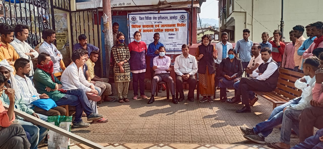 अल्मोड़ा-राष्ट्रीय विधिक सेवा प्राधिकरण,राज्य विधिक सेवा प्राधिकरण नैनीताल के निर्देश एवं जनपद न्यायाधीश के मार्ग दर्शन में जिला विधिक सेवा प्राधिकरण अल्मोड़ा द्वारा आज रैमजे पार्क(चौक बाजार) अल्मोड़ा में अंतरराष्ट्रीय श्रम दिवस के अवसर पर जागरूकता शिविर का आयोजन किया गया। सचिव जिला विधिक सेवा प्राधिकरण अल्मोड़ा रवि शंकर मिश्रा द्वारा श्रमिक दिवस पर सभी श्रमिकों को अंतरराष्ट्रीय श्रम दिवस की शुभकामनाएं देते हुए जीवन मूल्यों में निहित श्रम के आदर्श मानवीय मूल्यों को प्रेरित करने के लिए जानकारी दी।