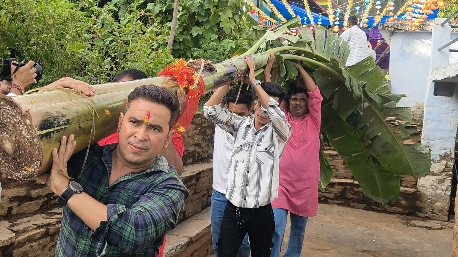 अल्मोड़ा-आज मंगलवार सप्तमी को मां नन्दा सुनंदा मूर्ति निर्माण को कदली वृक्षों को लेने मंदिर कमेटी के पुजारी,पदाधिकारी व श्रद्धालु आज सुबह 5.30 बजे रैलाकोट गये।कदली वृक्ष को वाहन द्वारा होटल शिखर तक लाया गया।वहां से पदयात्रा के माध्यम से ड्योढ़ीपोखर होते हुए मंदिर परिसर में लाया गया।जहां चंद वंशज युवराज नरेंद्र चन्द्र राज सिंह के परिवार व राजपुरोहित द्वारा उनका पूजन किया गया।कदली वृक्षो से नन्दा,सुनंदा माता की प्रतिमाओं का स्थानीय कलाकारों द्वारा निमार्ण किया गया।रात्रि 8 बजे मूर्तियों की प्राण प्रतिष्ठा एवं पूजा अर्चना की जाएगी।कदली वृक्ष लाने हेतु मंदिर के पुजारी हरीश जोशी के अलावा मंदिर कमेटी के सदस्य