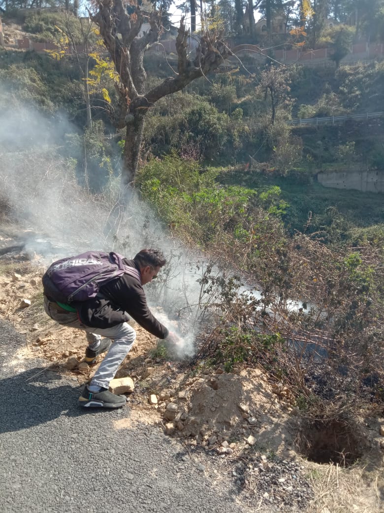 अल्मोड़ा-आज दोपहर 1 बजे कर्नाटकखोला से आगे सड़क के नीचे की ओर जंगल की ओर अचानक आग लग गयी।सड़क के नीचे लगी आग लगातार फैल रही थी।स्थानीय निवासी पूर्व फौजी नरेन्द्र बिष्ट के द्वारा इसकी सूचना लक्ष्मेश्वर वार्ड के सभाषद अमित साह मोनू को दी गयी।सभाषद ने तुरन्त मौके पर पहुंचकर पूर्व फौजी नरेन्द्र बिष्ट के साथ मिलकर स्वप्रयासों से उक्त आग को बुझाया तथा इसे फैलने से रोका।सभाषद ने जनहित में लोगों से अपील की है कि गर्मी का मौसम प्रारम्भ हो गया है।सूखी घास,जंगल अथवा कूड़े के ढेर में आग ना लगाये क्योंकि आग फैल सकती है जिससे पर्यावरण के साथ साथ ही स्थानीय लोगों के लिए भी दिक्कतें पैदा हो सकती हैं।
