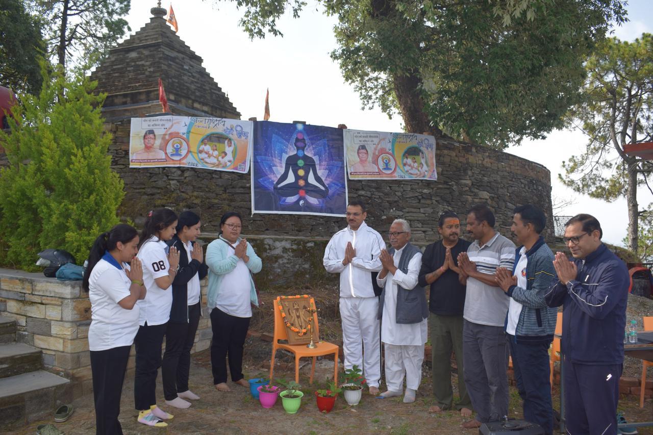 अल्मोड़ा-आज दिनांक 3 जून 2025 को 11वें अंतर्राष्ट्रीय योग दिवस से पूर्व के कार्यक्रम के अंतर्गत कसार देवी मंदिर परिसर अल्मोड़ा में हरित योग का आयोजन जिला आयुर्वेदिक एवं यूनानी अधिकारी अल्मोड़ा डॉक्टर गणेश चंद्र उपाध्याय के निर्देशन में किया गया।जिसमें मुख्य अतिथि के रूप में सी ओ गोपाल जोशी उपस्थित रहे।कार्यक्रम में मंदिर परिसर अध्यक्ष किशन सिंह मेहरा,कसार होटल एसोसिएशन के अध्यक्ष मोहन रयाल,सचिव गोपाल सिंह,कुंदन मेहरा एवं अन्य उपस्थित रहे।इस कार्यक्रम में सी.ओ गोपाल जोशी द्वारा जनमानस को योग करने के लिए प्रोत्साहित किया गया एवं 11वीं अंतर्राष्ट्रीय योग दिवस की हार्दिक शुभकामनाएं दी गई।इस योग कार्यक्रम में को डॉक्टर योगेन्द सिंह शैल चिकित्सालय अल्मोड़ा के मार्गदर्शन में संपन्न कराया गया। कार्यक्रम में विभाग की ओर से नोडल डॉ अनुपमा त्यागी,डॉ दीपिका धर्मशक्तू,डॉ ज्योति सागर,अंशुल रावत,श्रीमती ऋचा रावत,श्रीमती प्रीति कैंतयूरा,सुश्री अनामिका आशा,आशीष कुमार,योगा अनुदेशक ज्योति रैकवाल,पंकज मेहता,स्टाफ के दुर्गेश तिवारी,शिब्बन मेहरा ने अपना योगदान दिया।